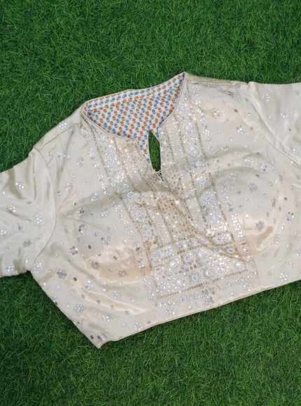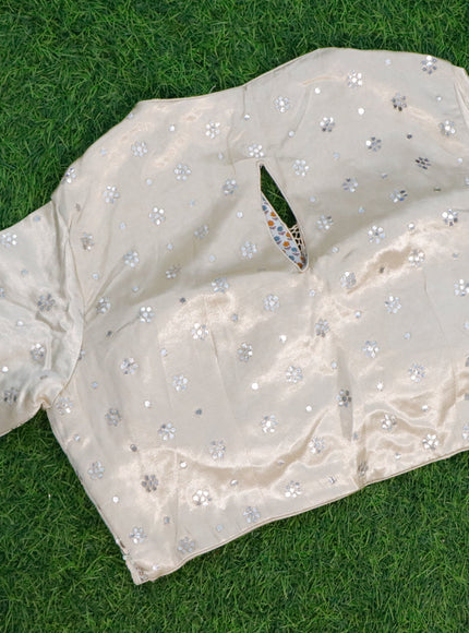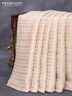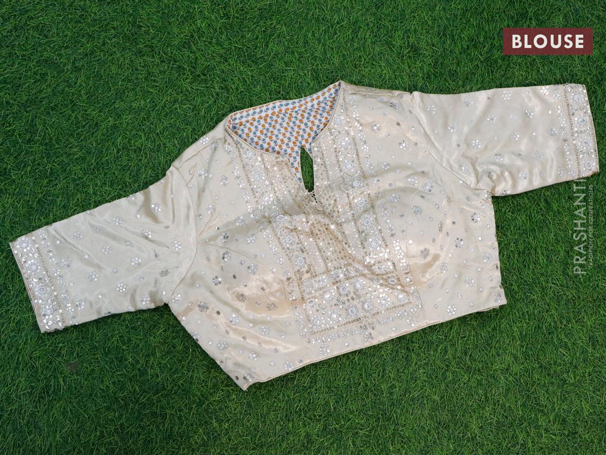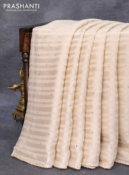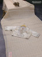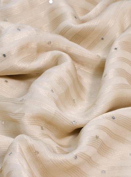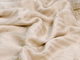 Organza silk saree cream with allover zari woven stripes pattern & mirror work and gottapatti lace work border & embroidery work readymade blouse