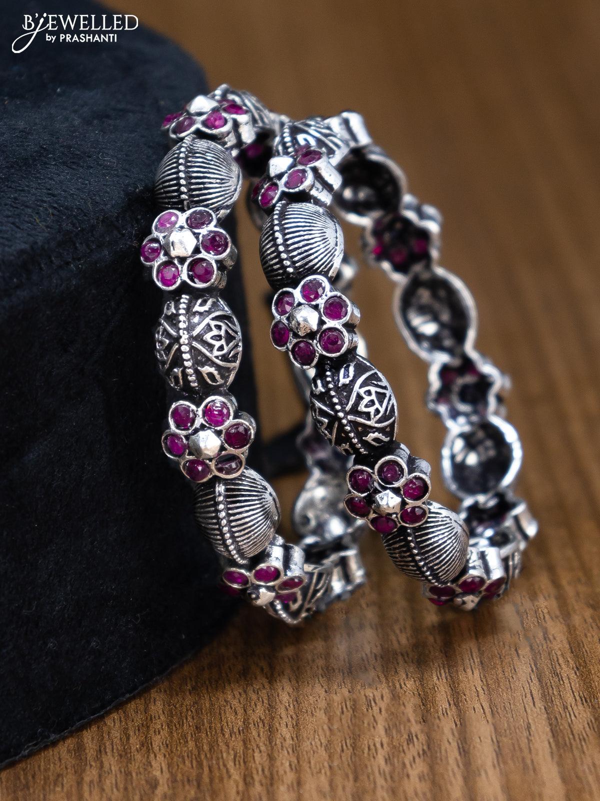 Oxidised bangles floral design with ruby stone