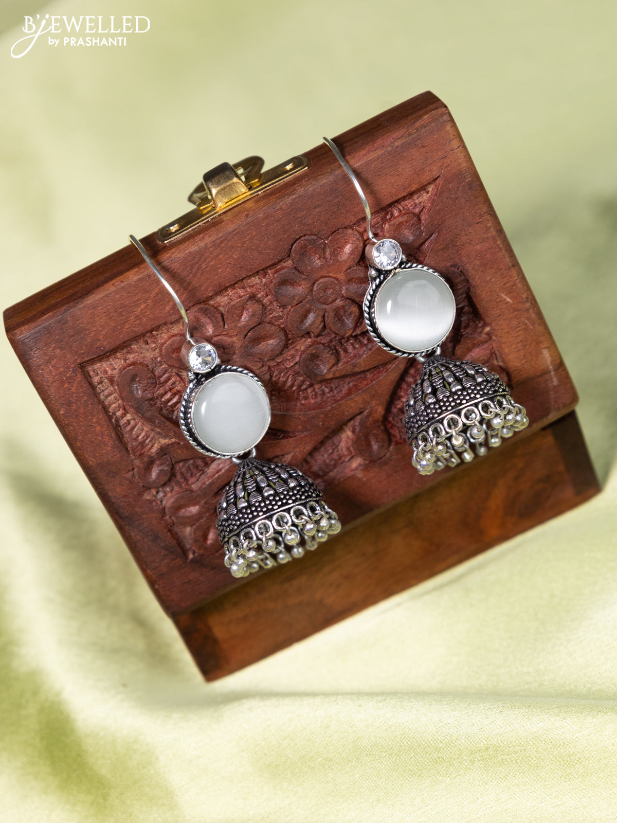Oxidised hanging jhumka with grey & cz stones and hangings