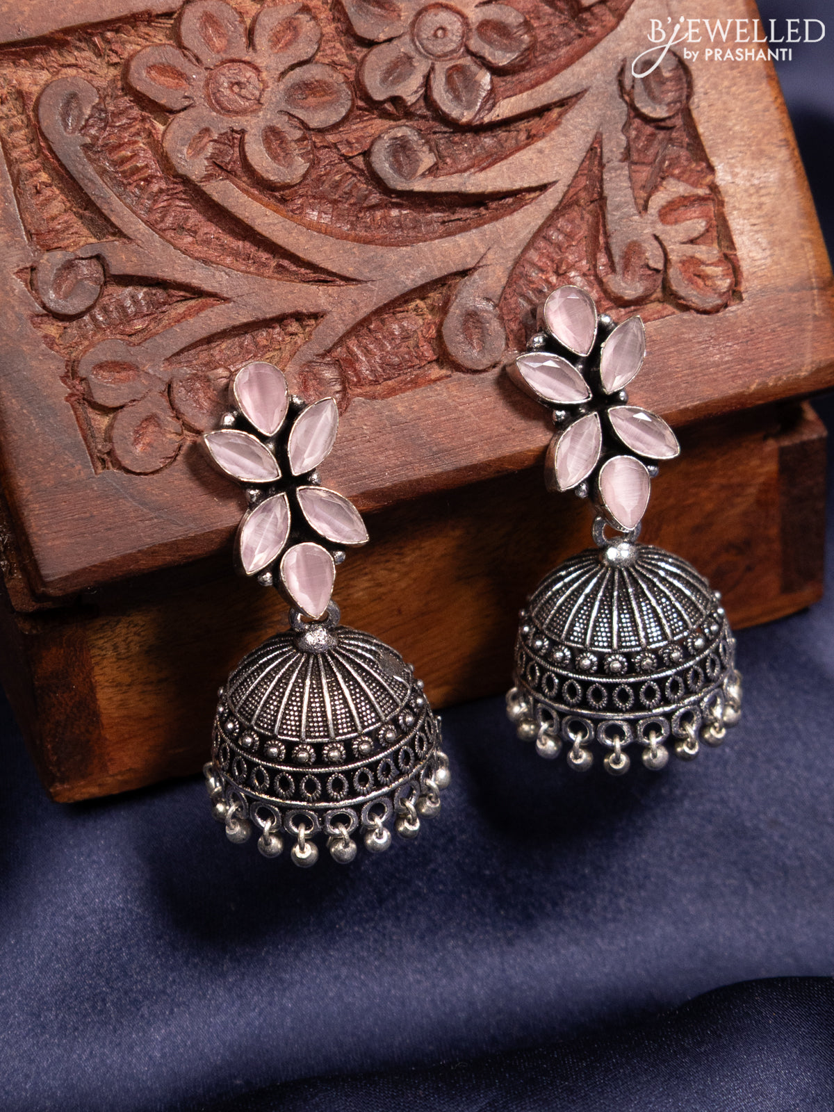 Oxidised jhumka with baby pink stones and silver beads hanging