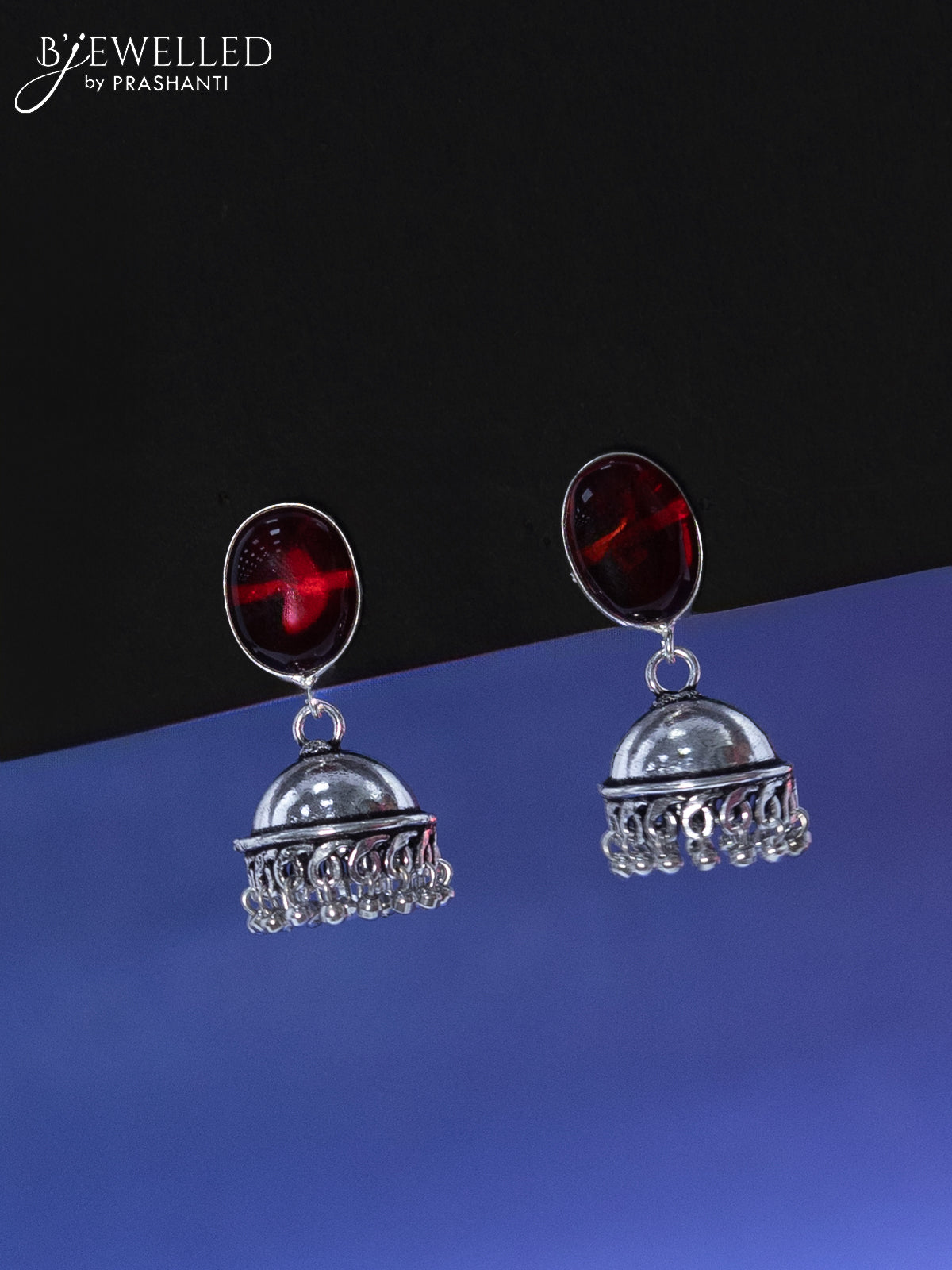 Oxidised jhumka with ruby stone and hangings
