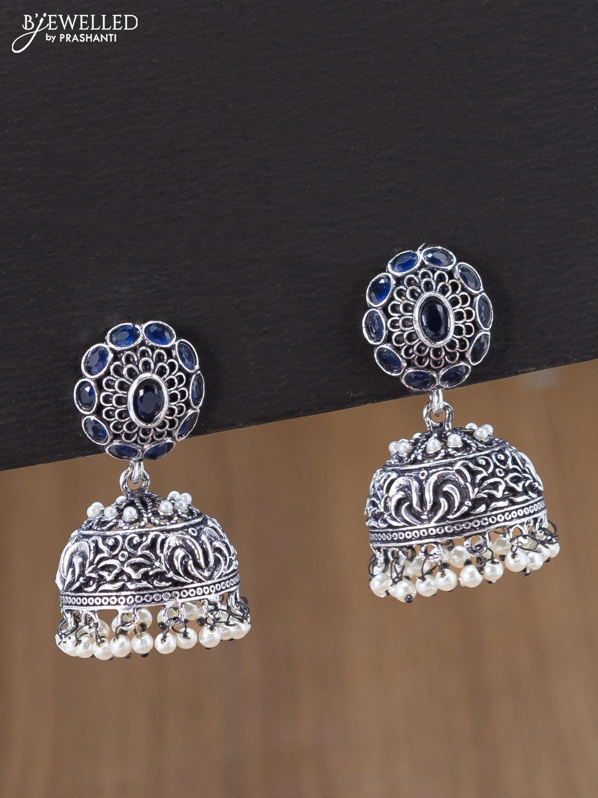 Oxidised jhumka with sapphire stones and pearl hangings