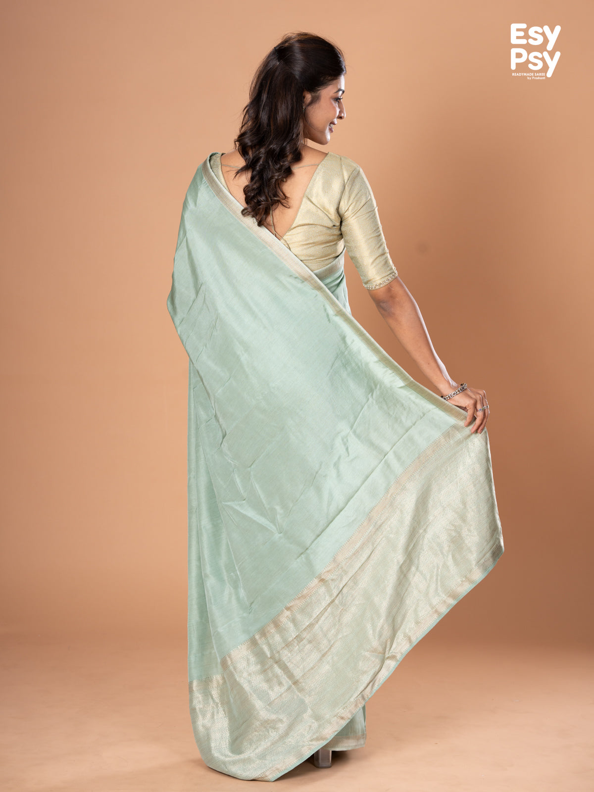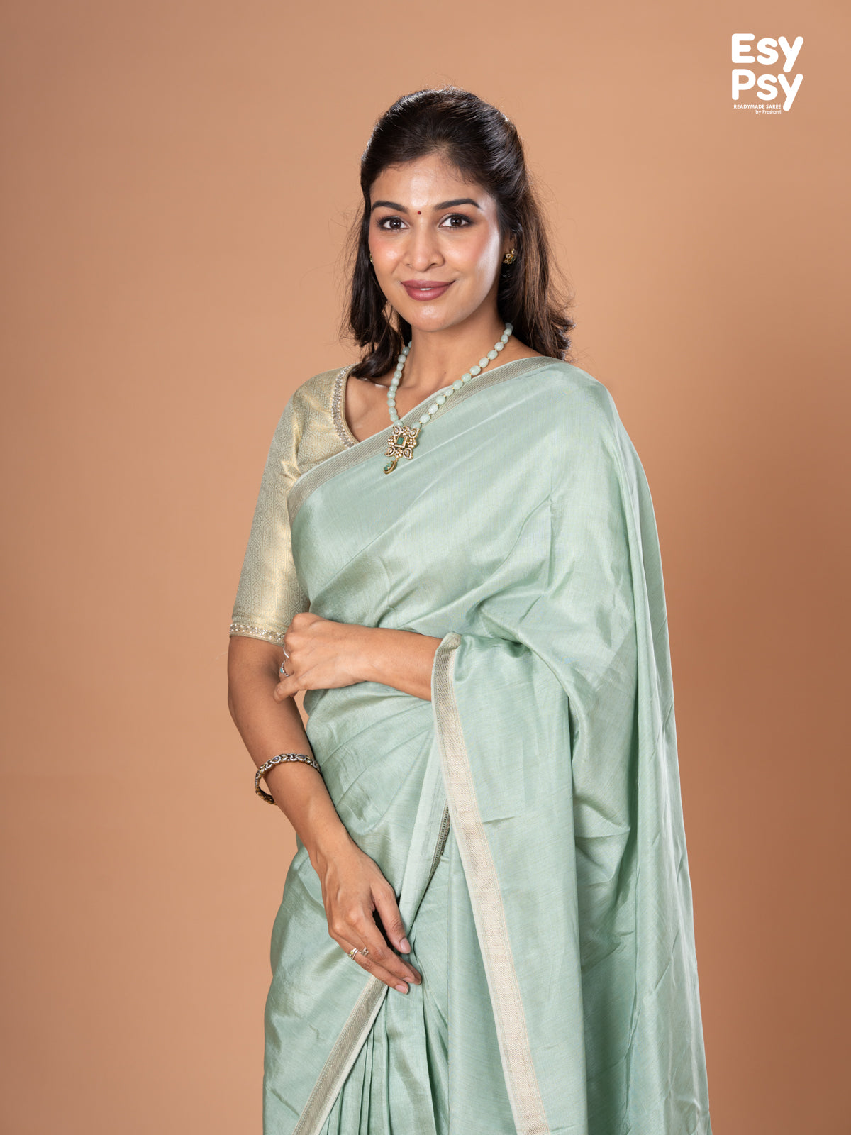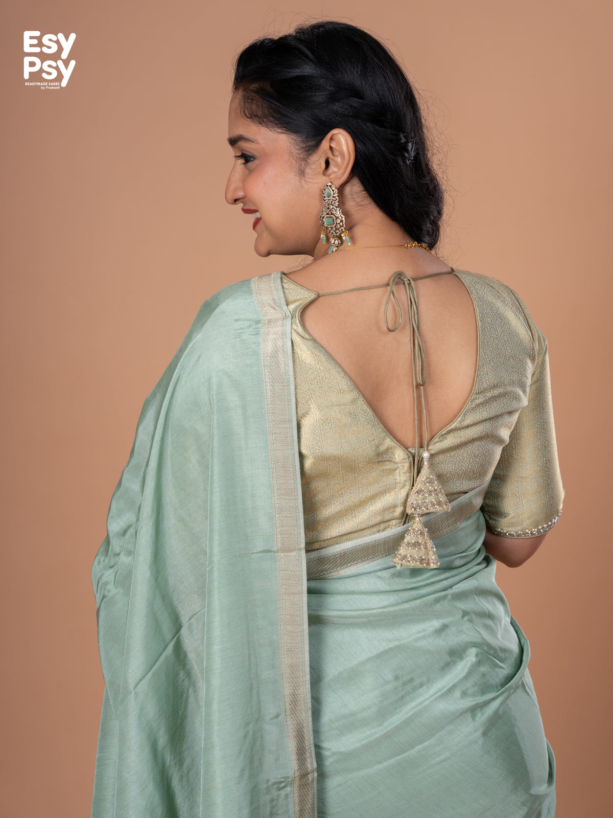 Pastel green Semi Tussar readymade saree with readymade brocade blouse