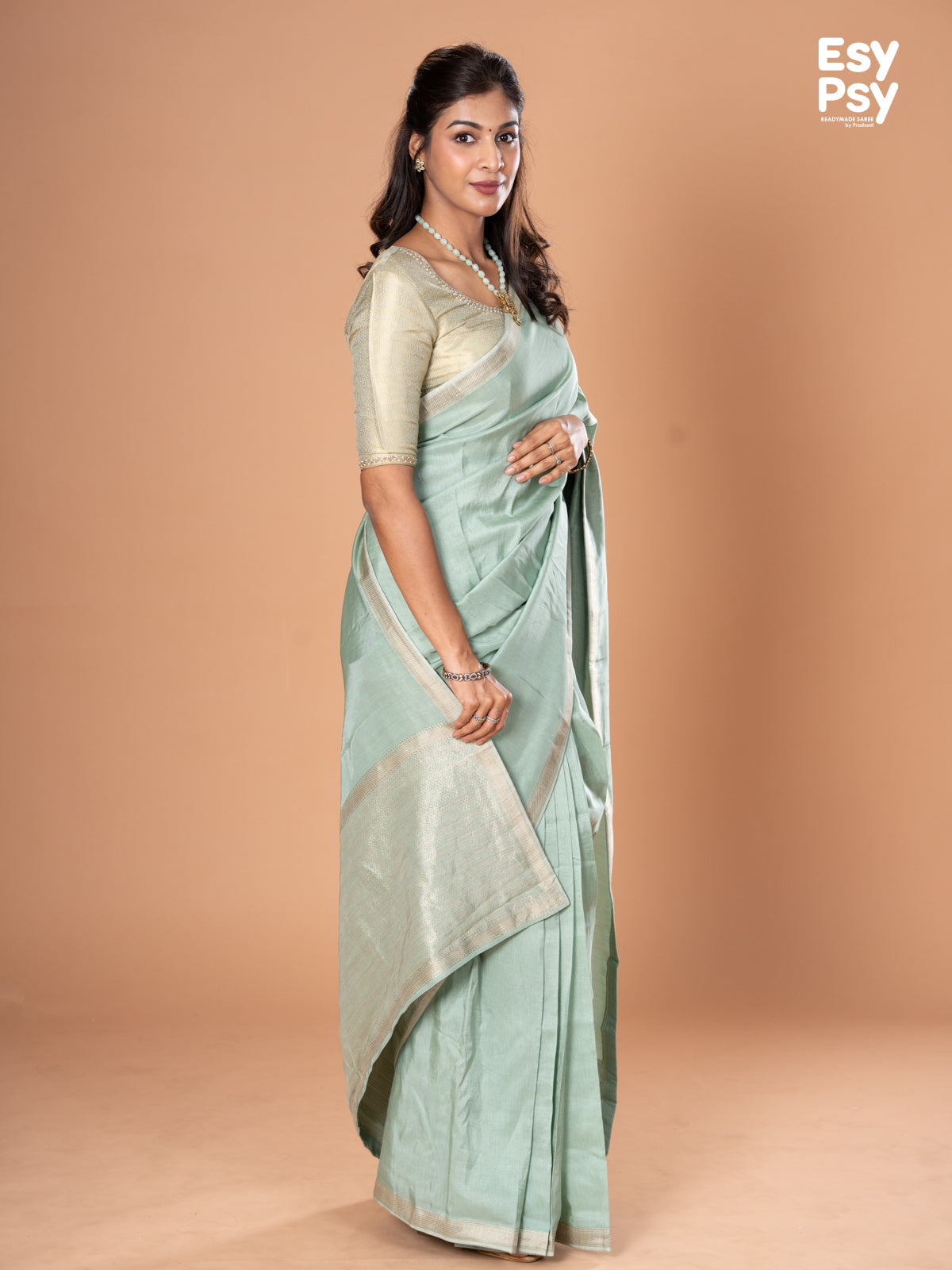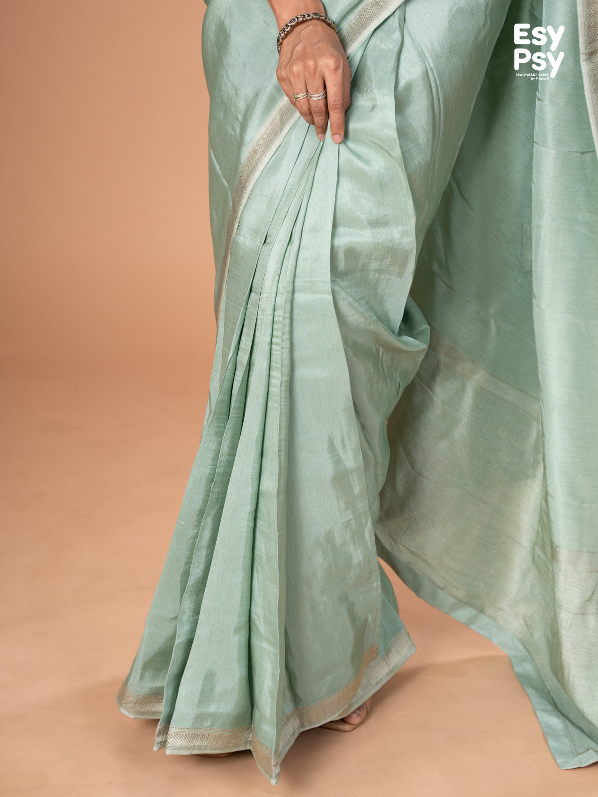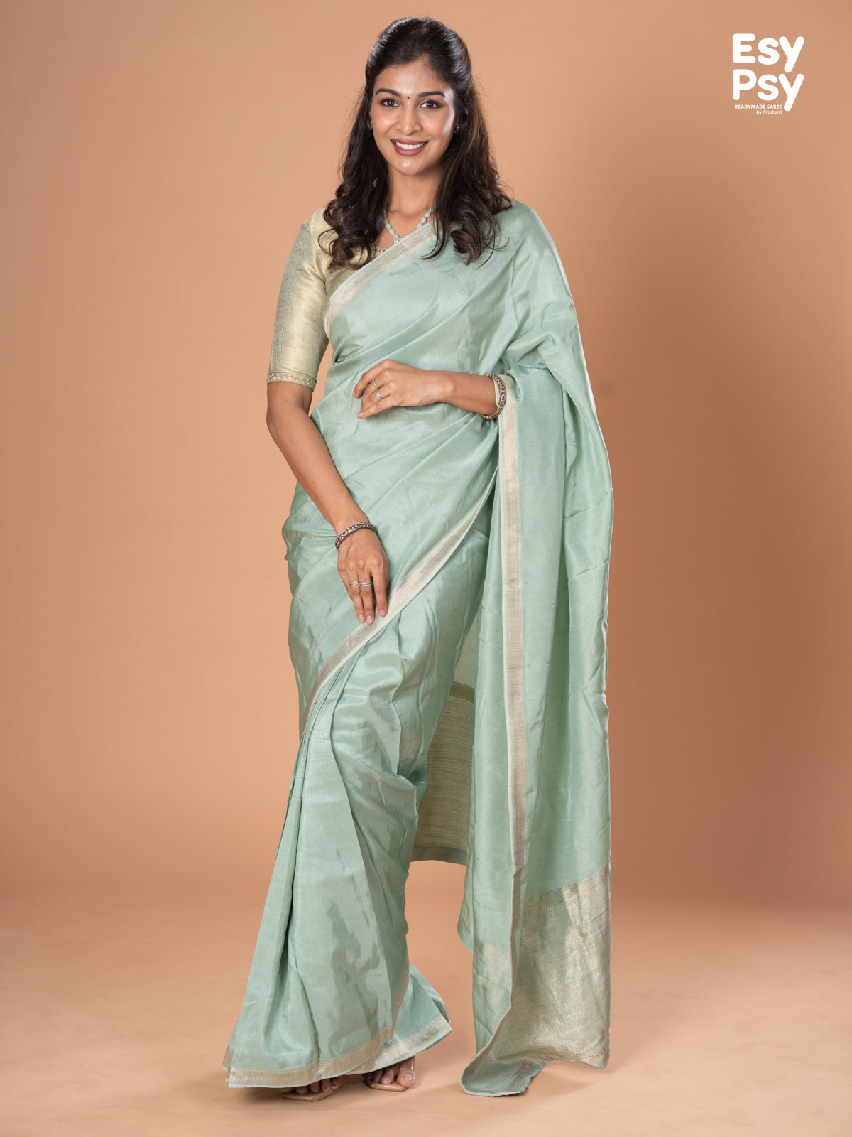 Pastel green Semi Tussar readymade saree with readymade brocade blouse