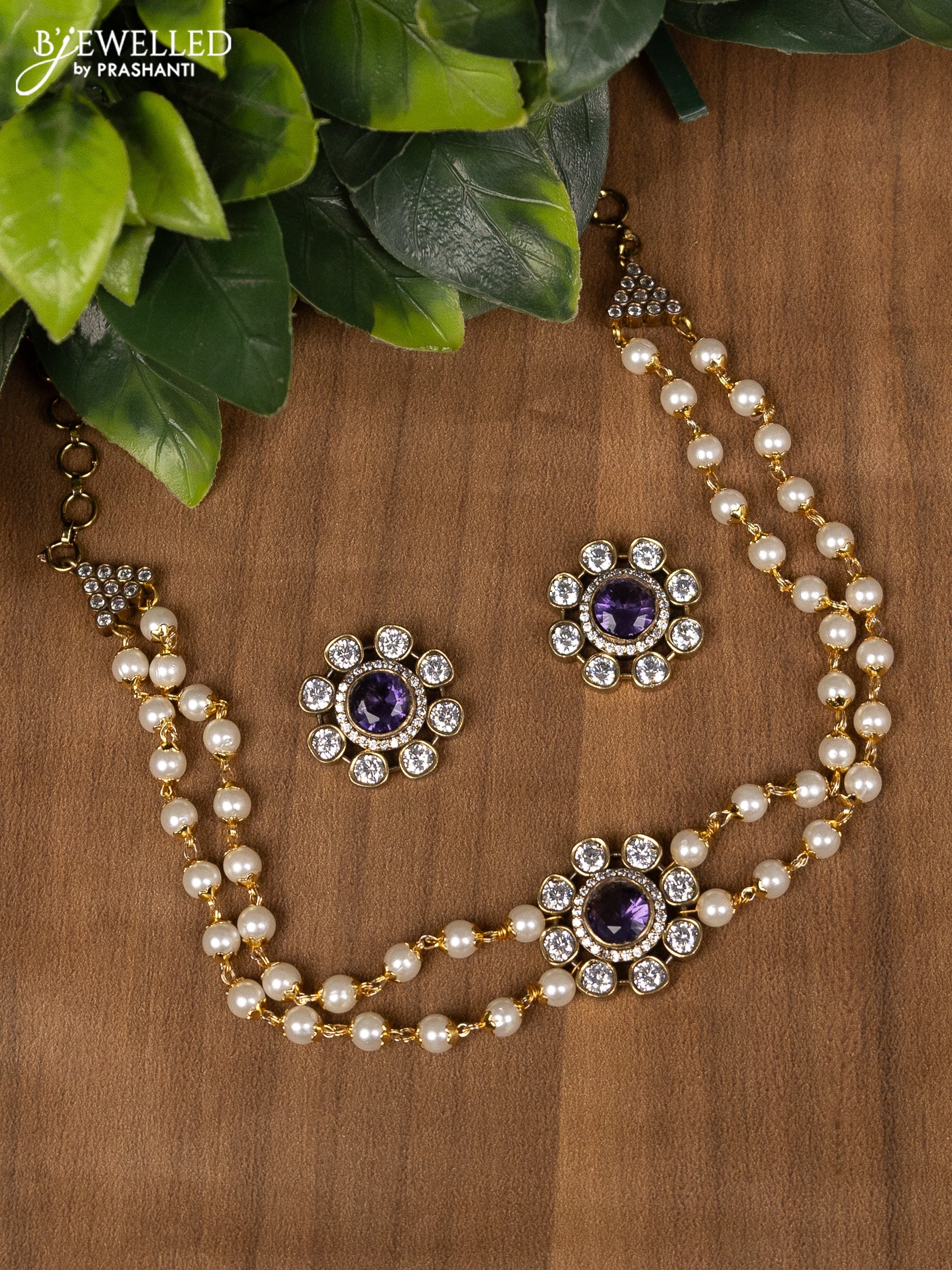 Pearl choker with violet and cz stone