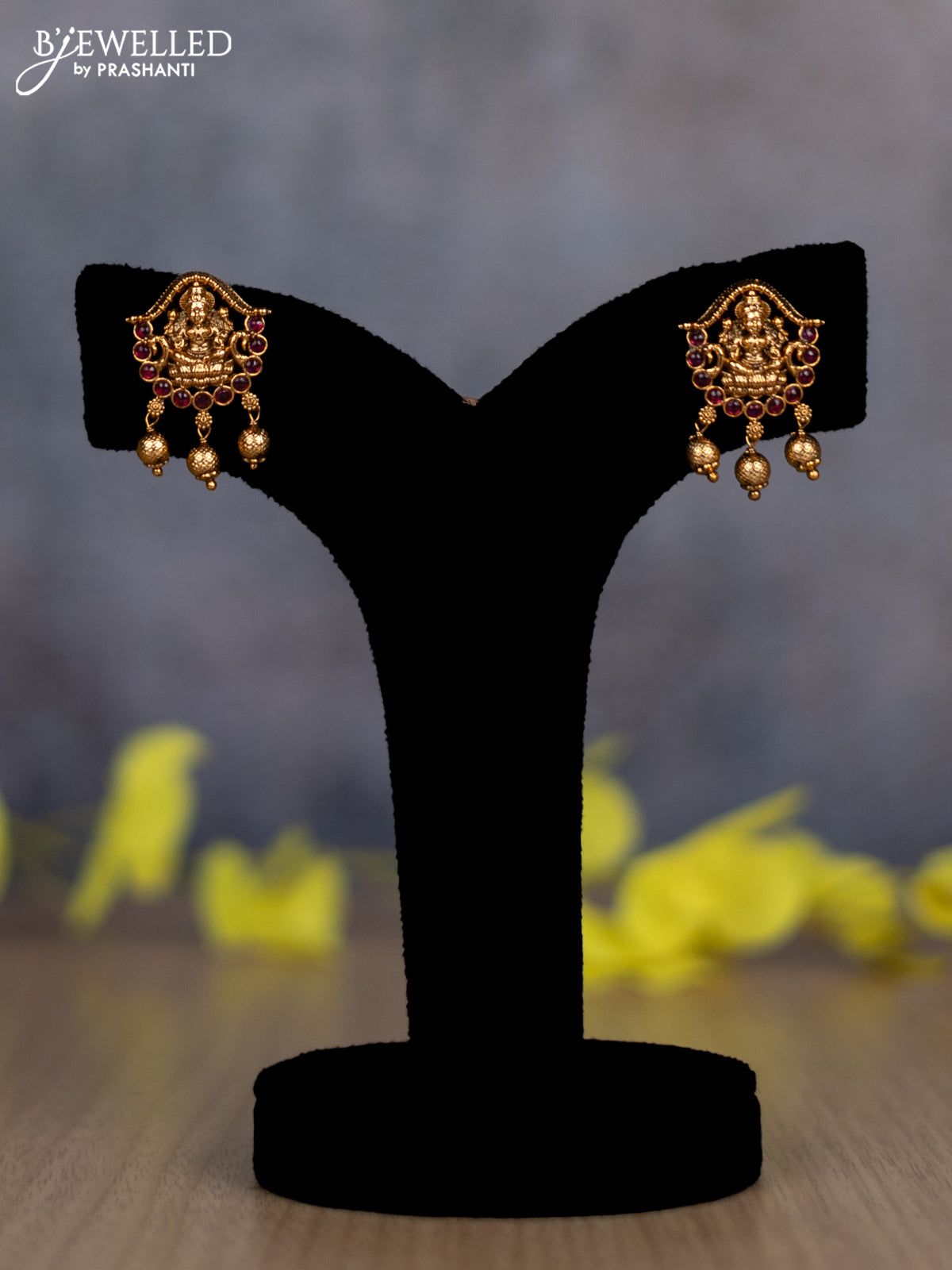 Pearl double layer haram lakshmi pendant with ruby stones and golden beads hanging