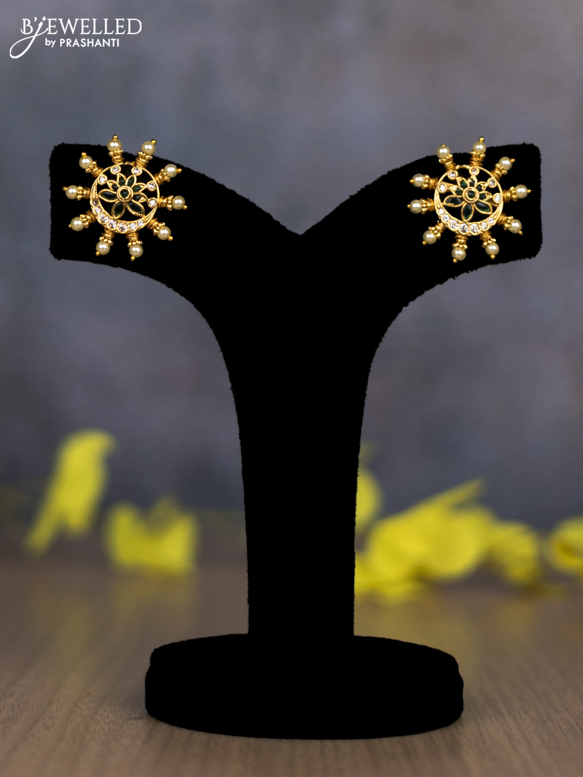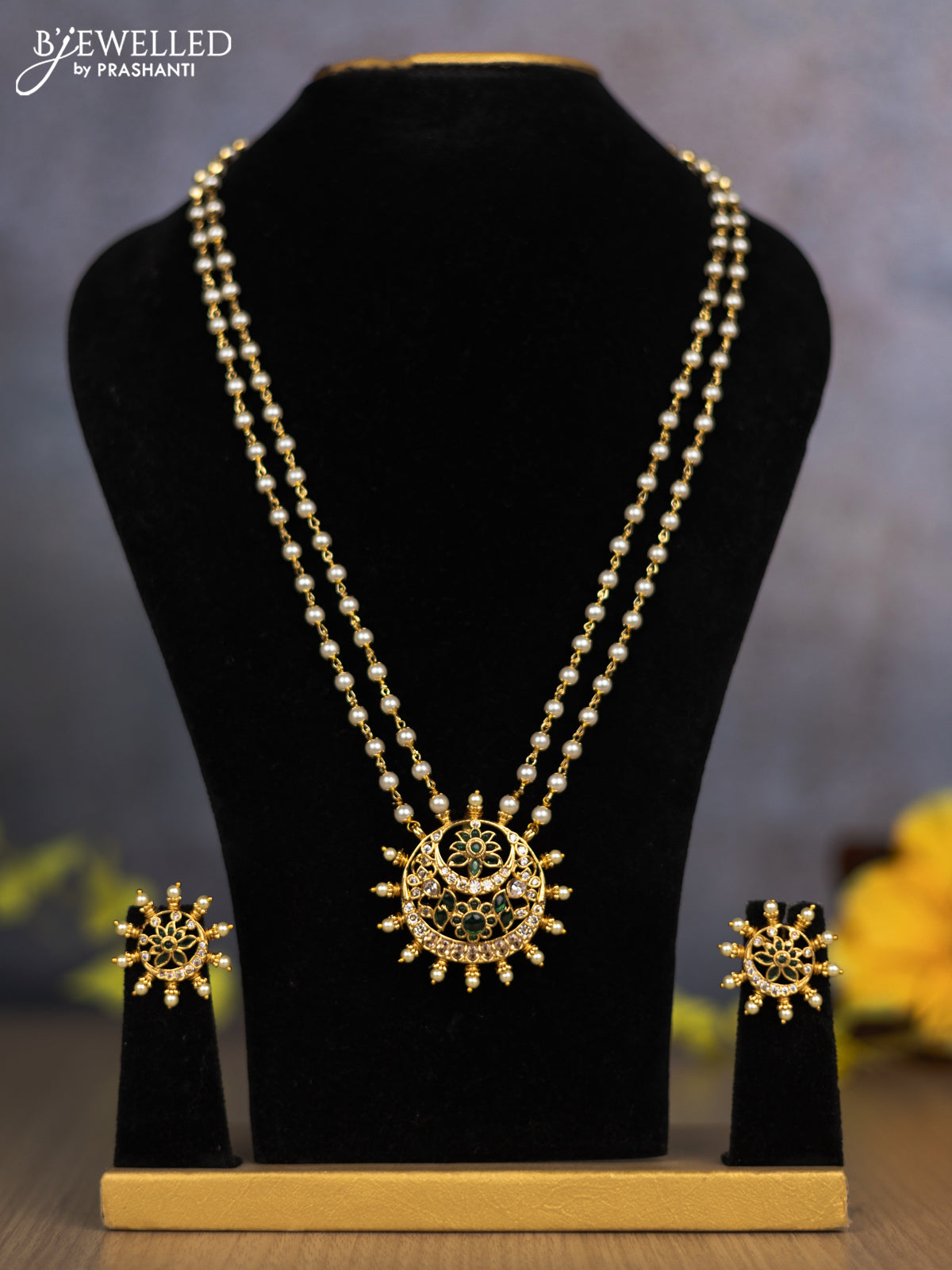 Pearl double layer necklace chandbali design with emerald and cz stones