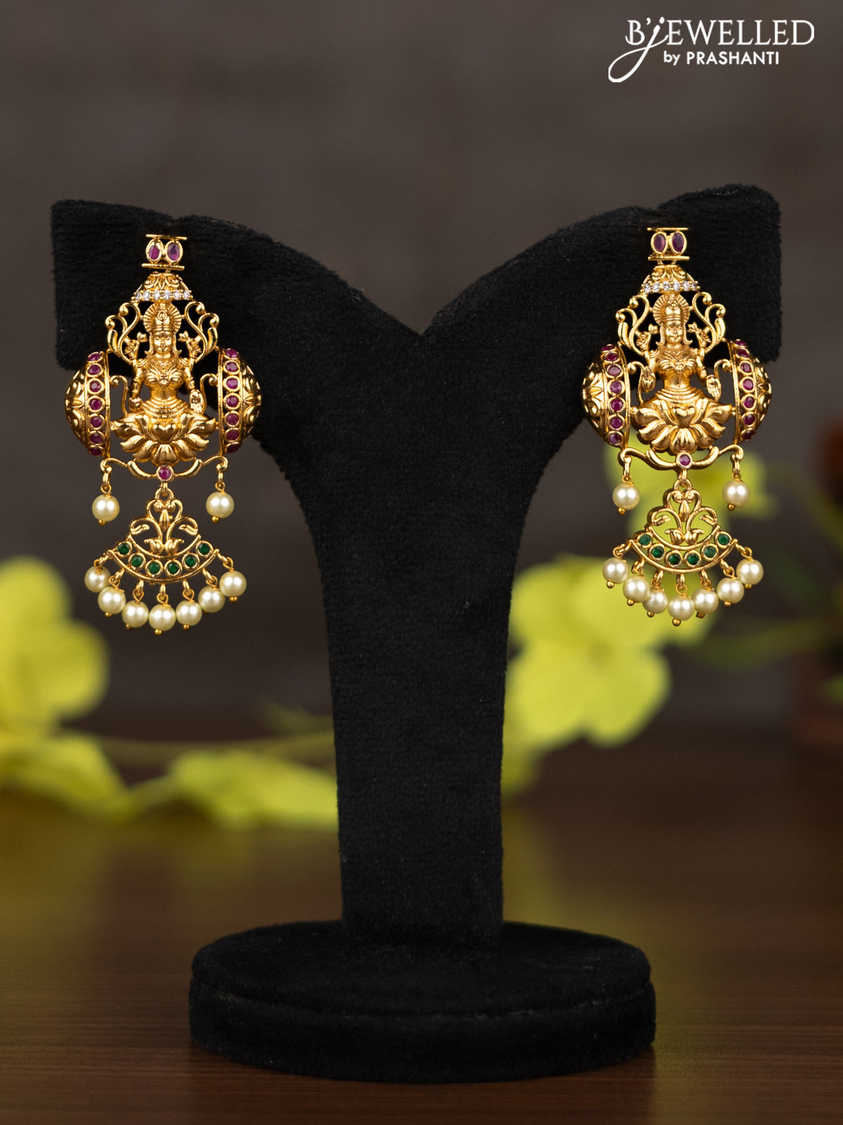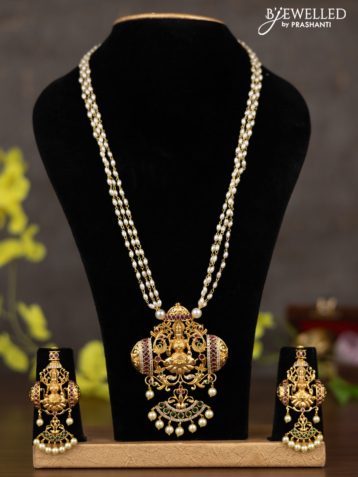 Pearl haaram lakshmi pendant with kemp & cz stones and pearl hangings