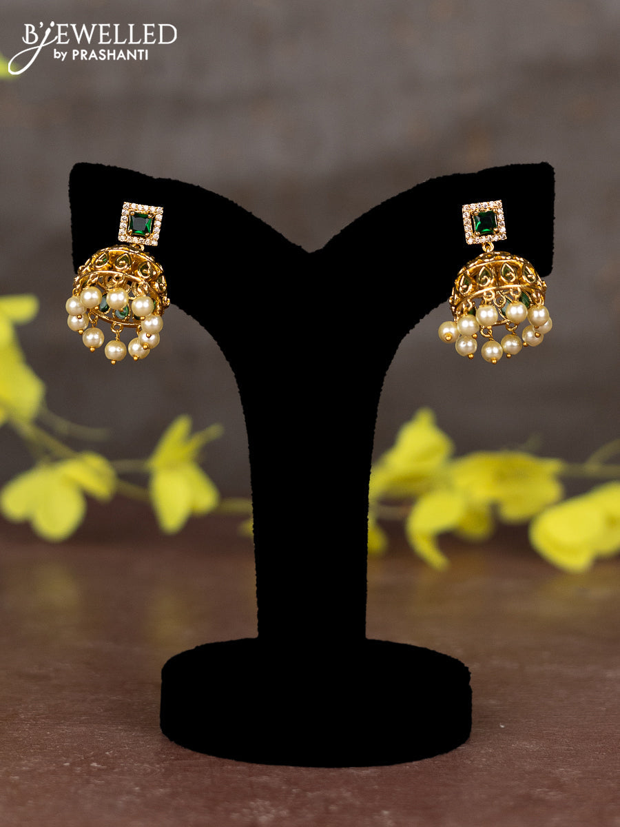 Pearl necklace with emerald & cz stones and pearl hangings