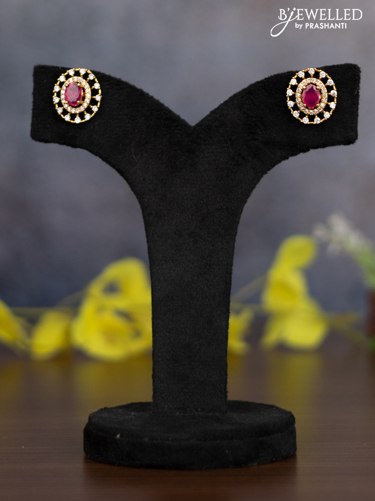 Pearl necklace with ruby and cz stones
