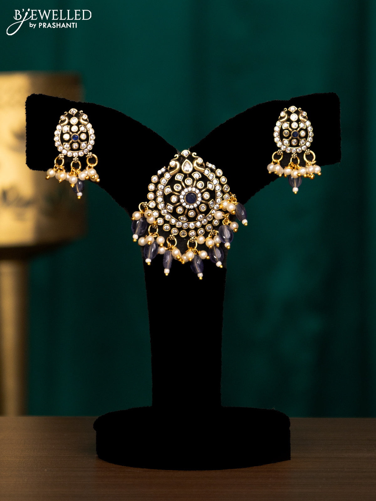 Pendant set with violet & cz stones and beads hanging in victorian finish