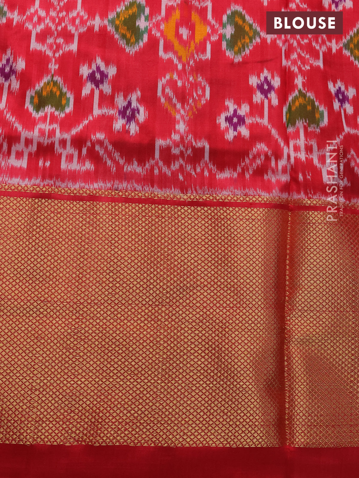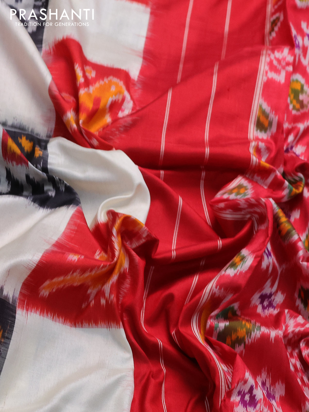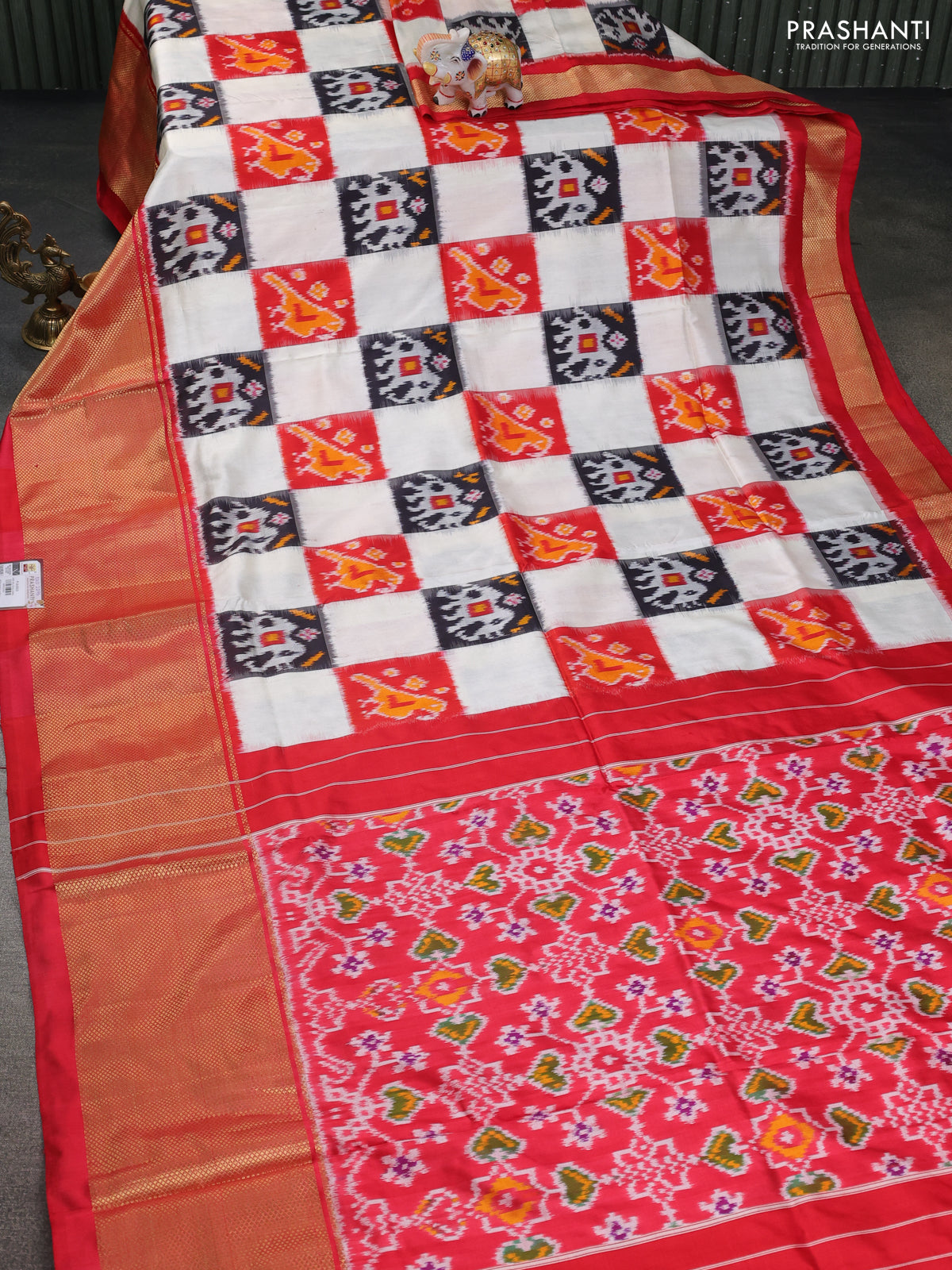 Pochampally silk saree cream and red with allover ikat prints and long zari woven border