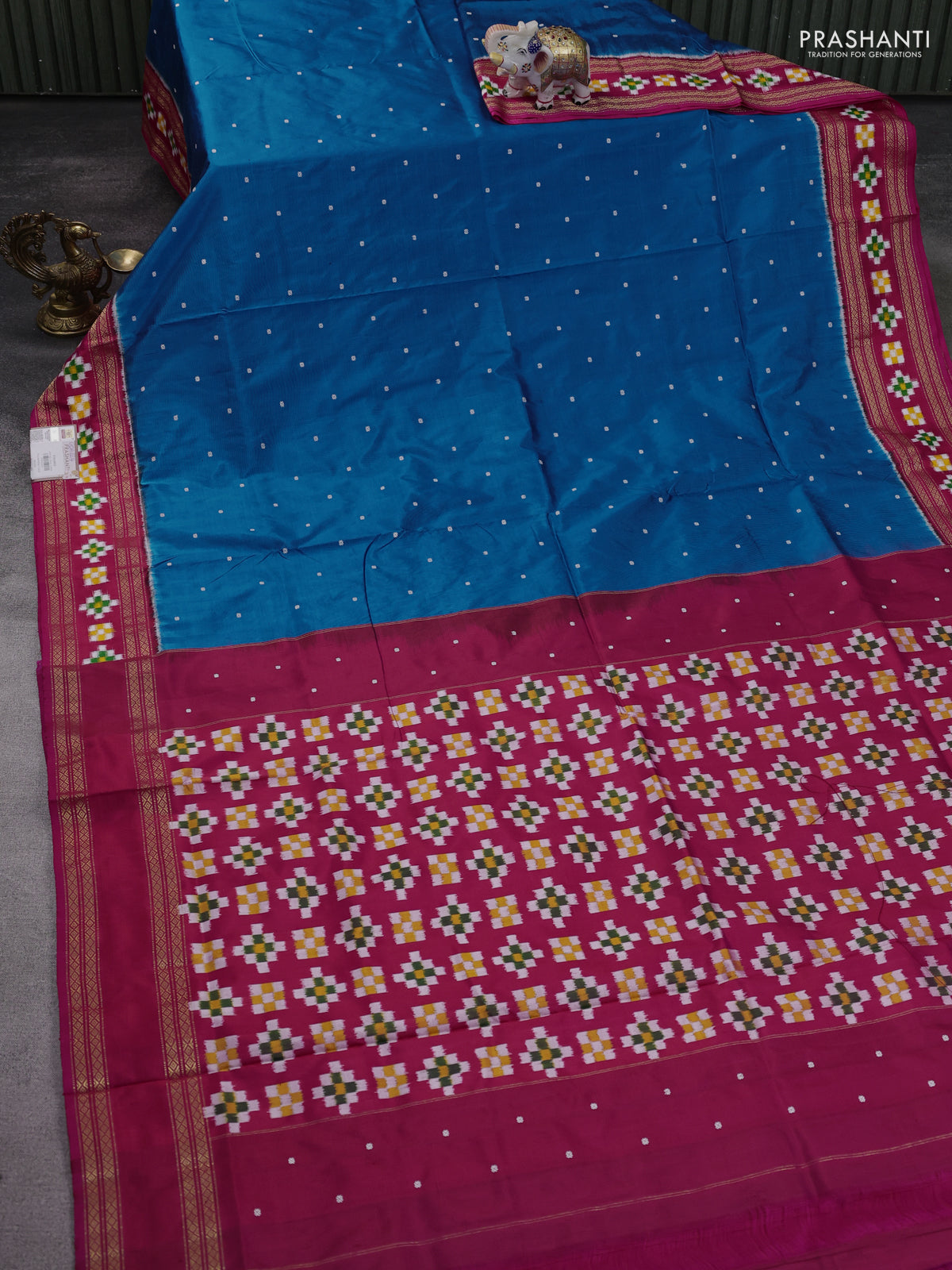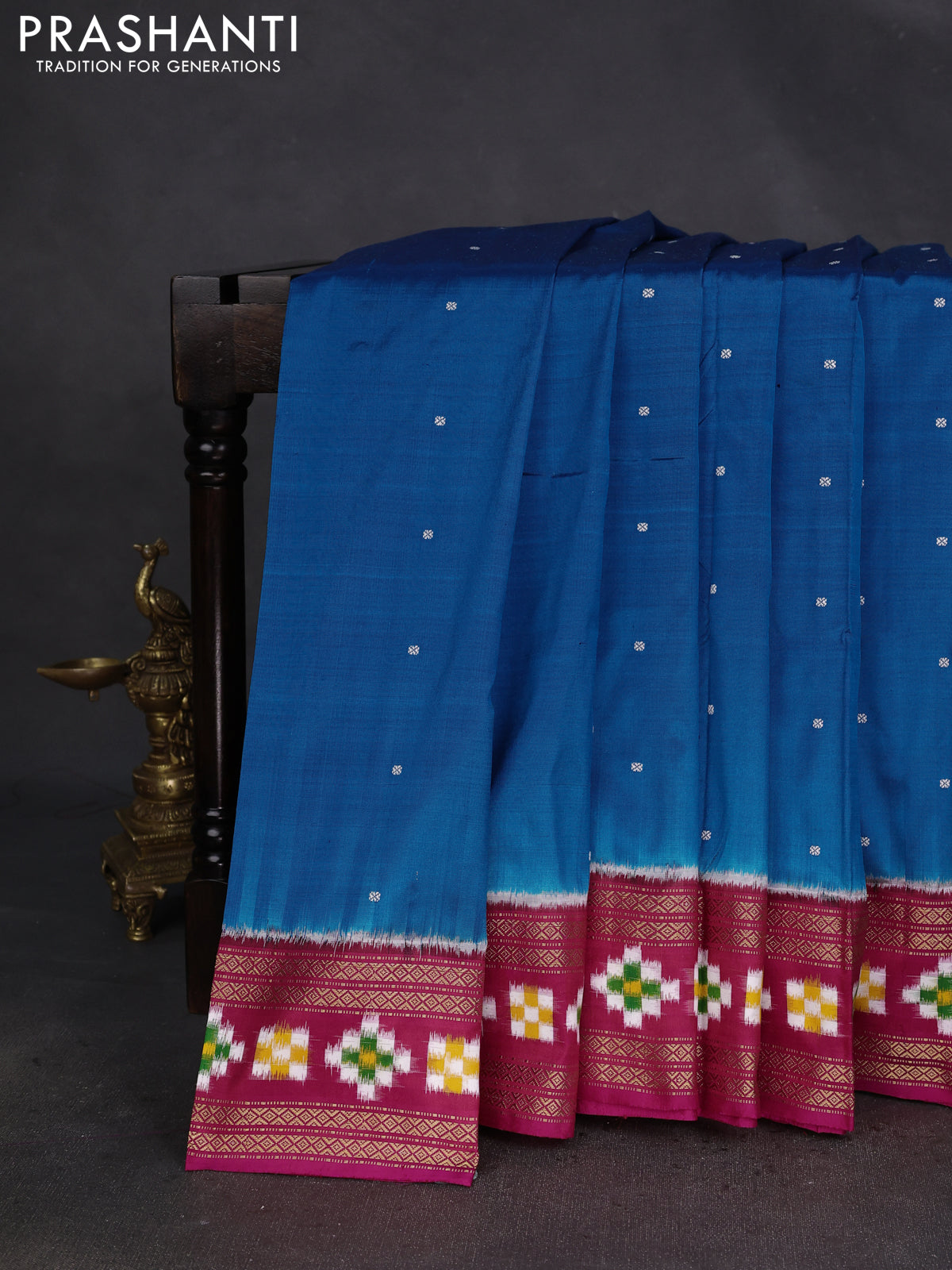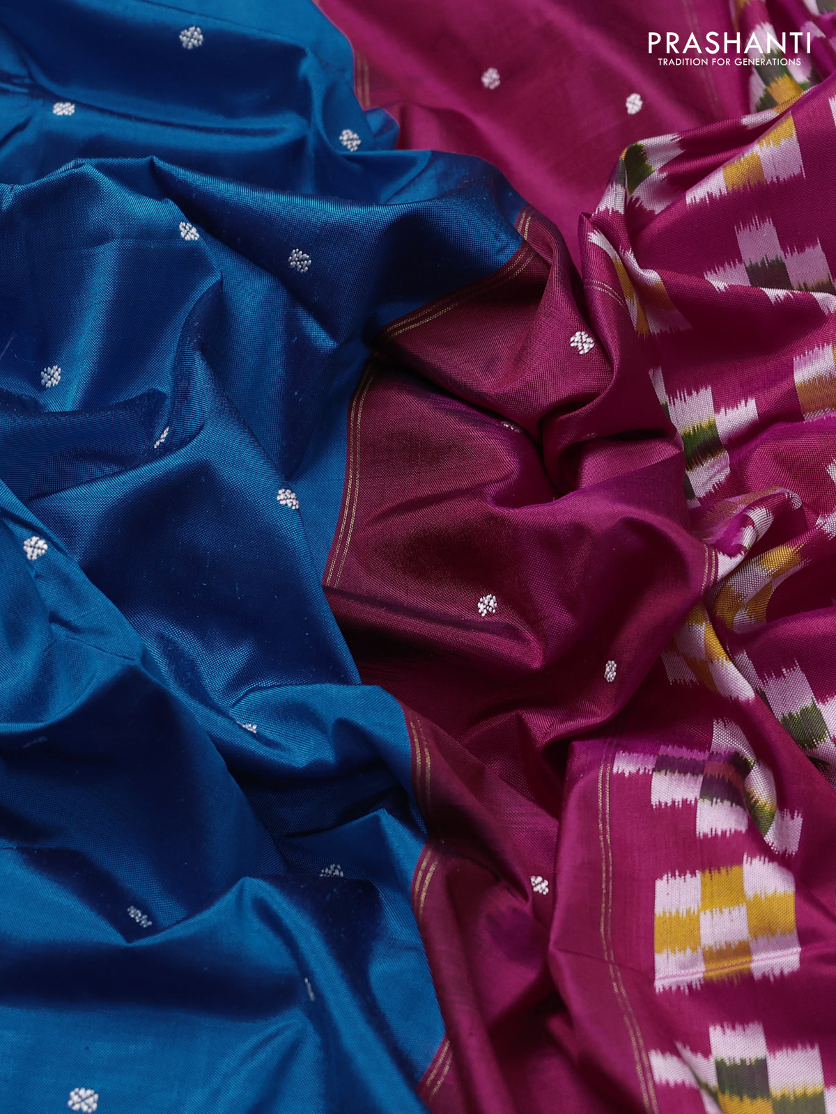 Pochampally silk saree cs blue and pink with allover thread woven buttas and zari woven ikat border