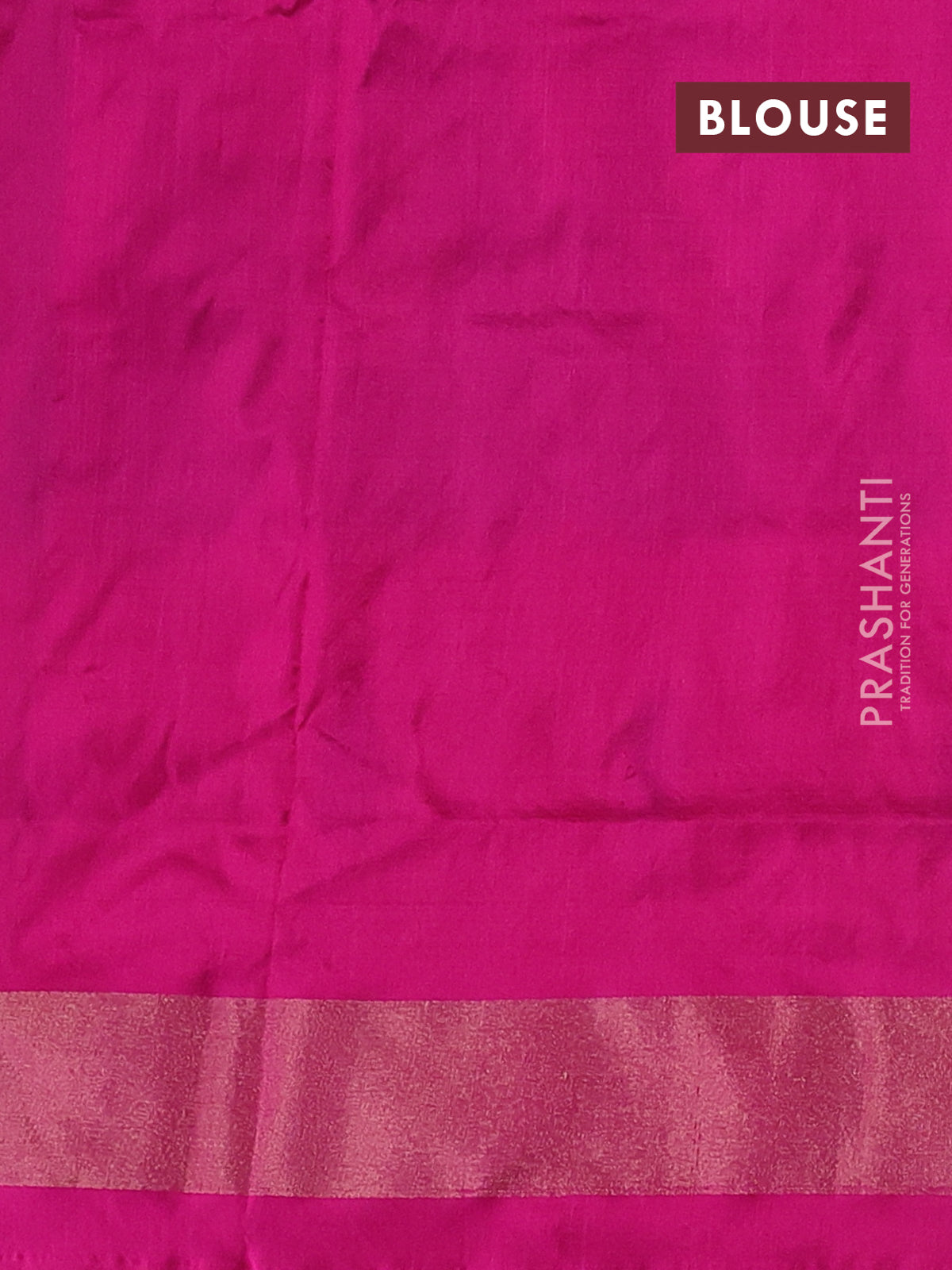Pochampally silk saree dual shade of blue and magenta pink with allover ikat butta weaves and long ikat woven zari border