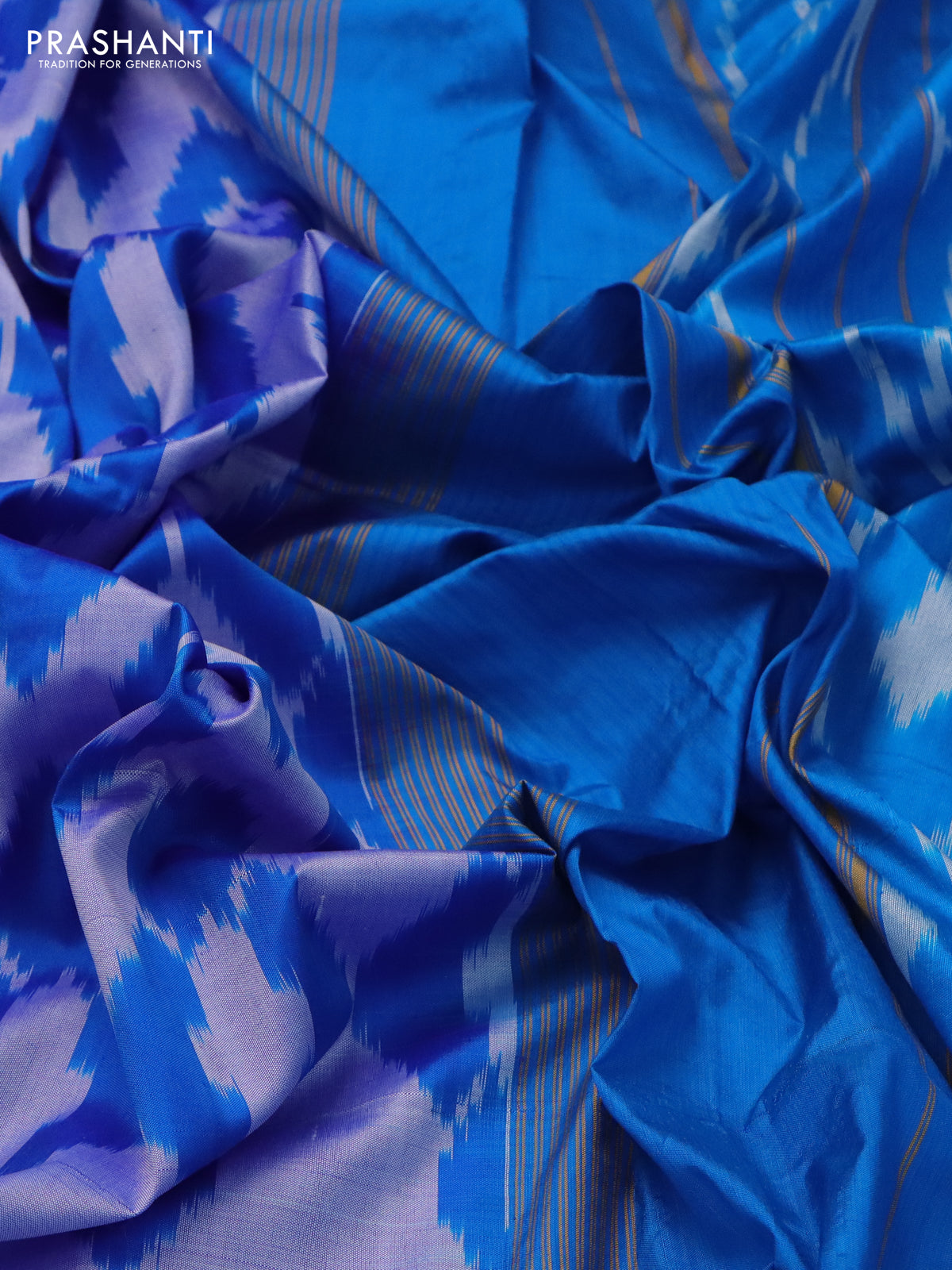 Pochampally silk saree dual shade of mild lavender and cs blue with allover ikat weaves and long ikat woven zari border