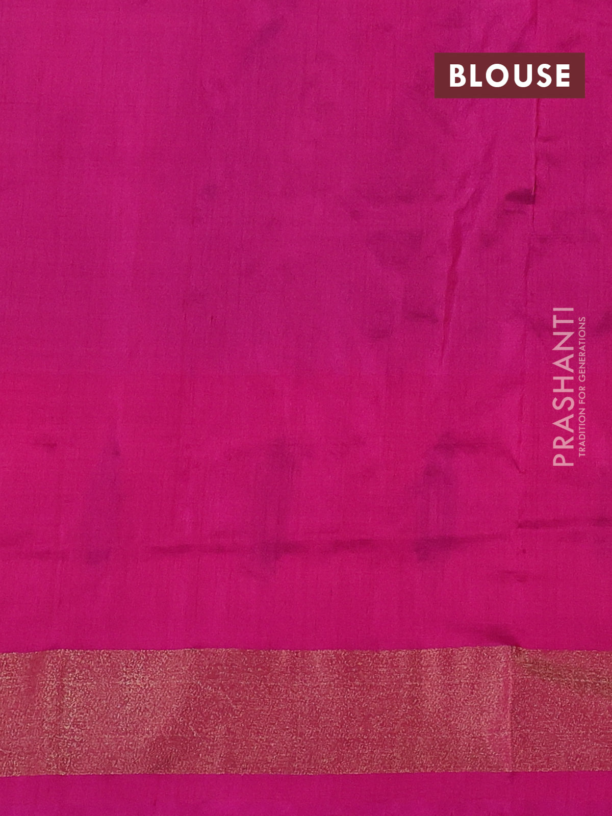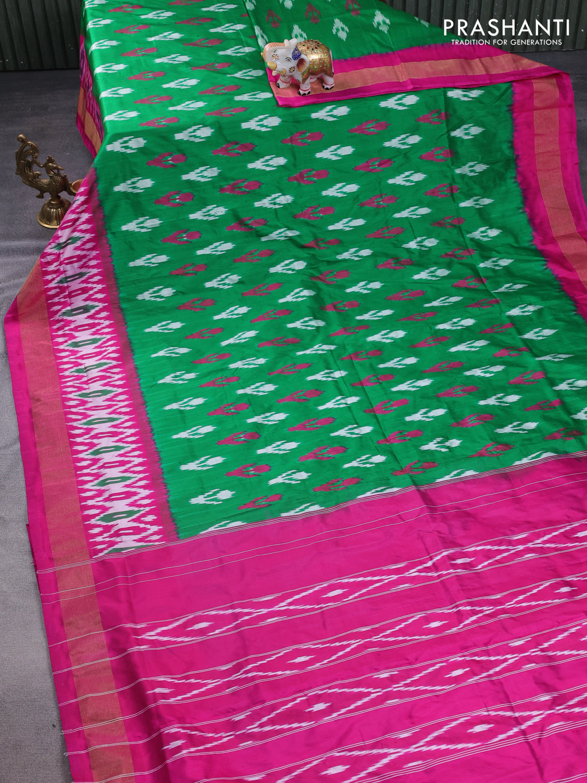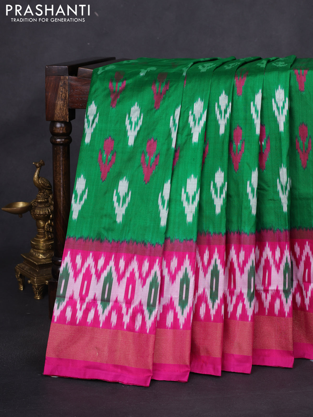Pochampally silk saree greem and magenta pink with allover ikat butta weaves and long ikat woven zari border
