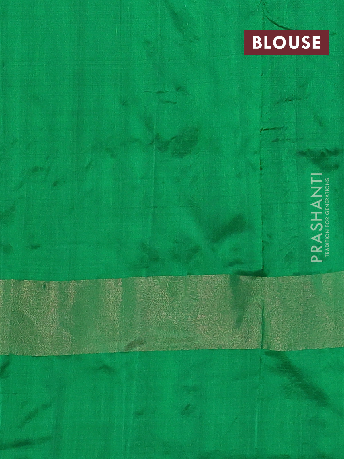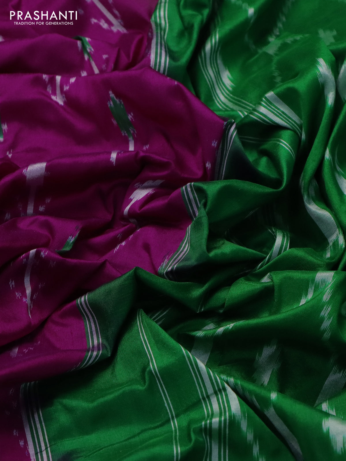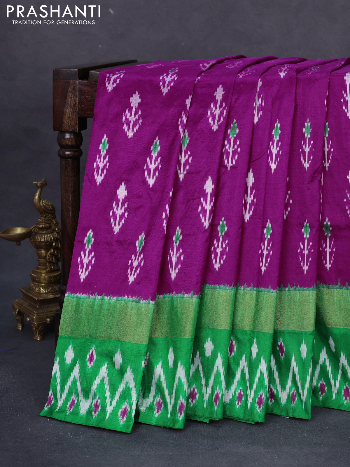Pochampally silk saree magenta pink and green with allover ikat butta weaves and zari woven ikat border