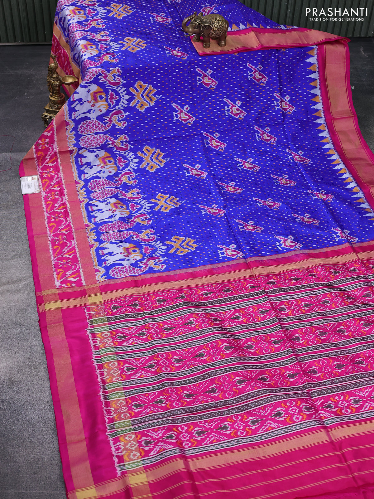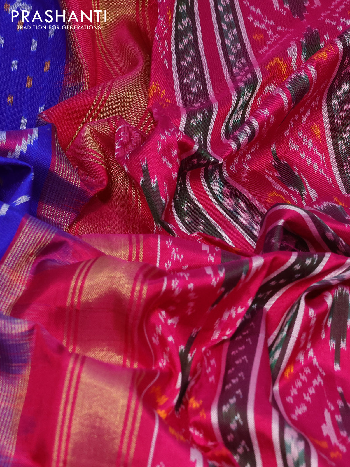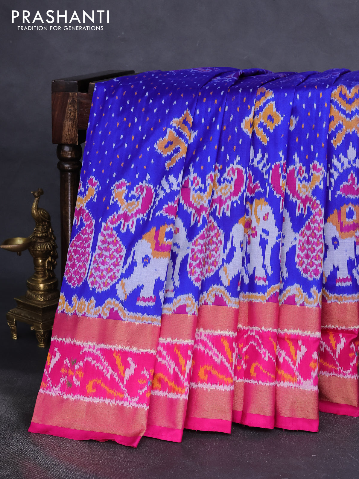 Pochampally silk saree royal blue and pink with allover patola weaves and zari woven ikat border