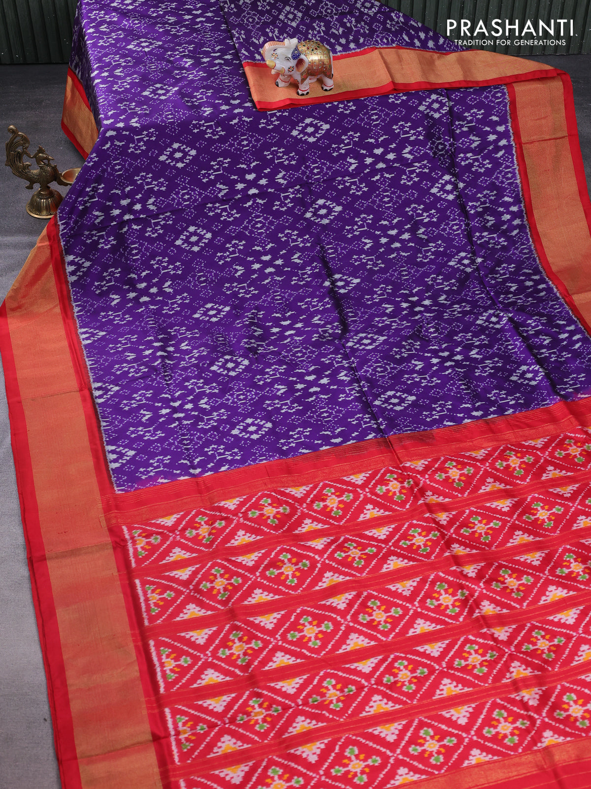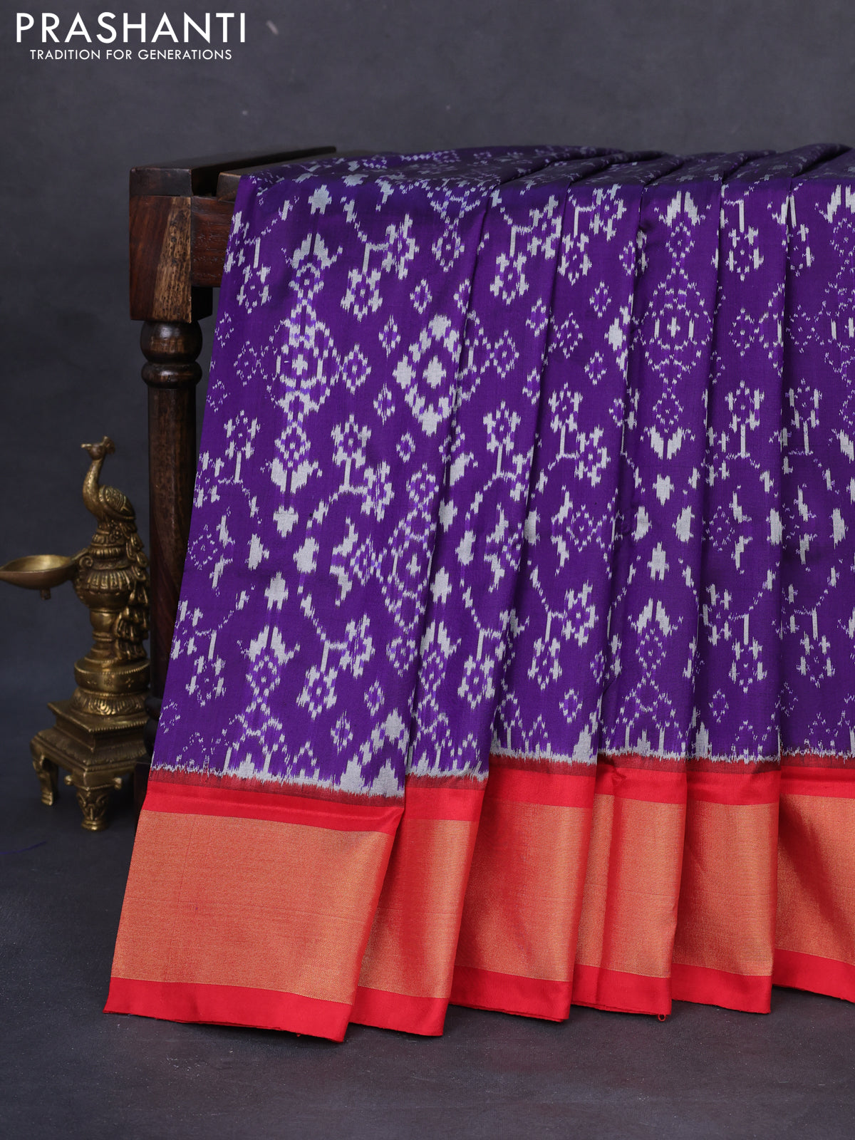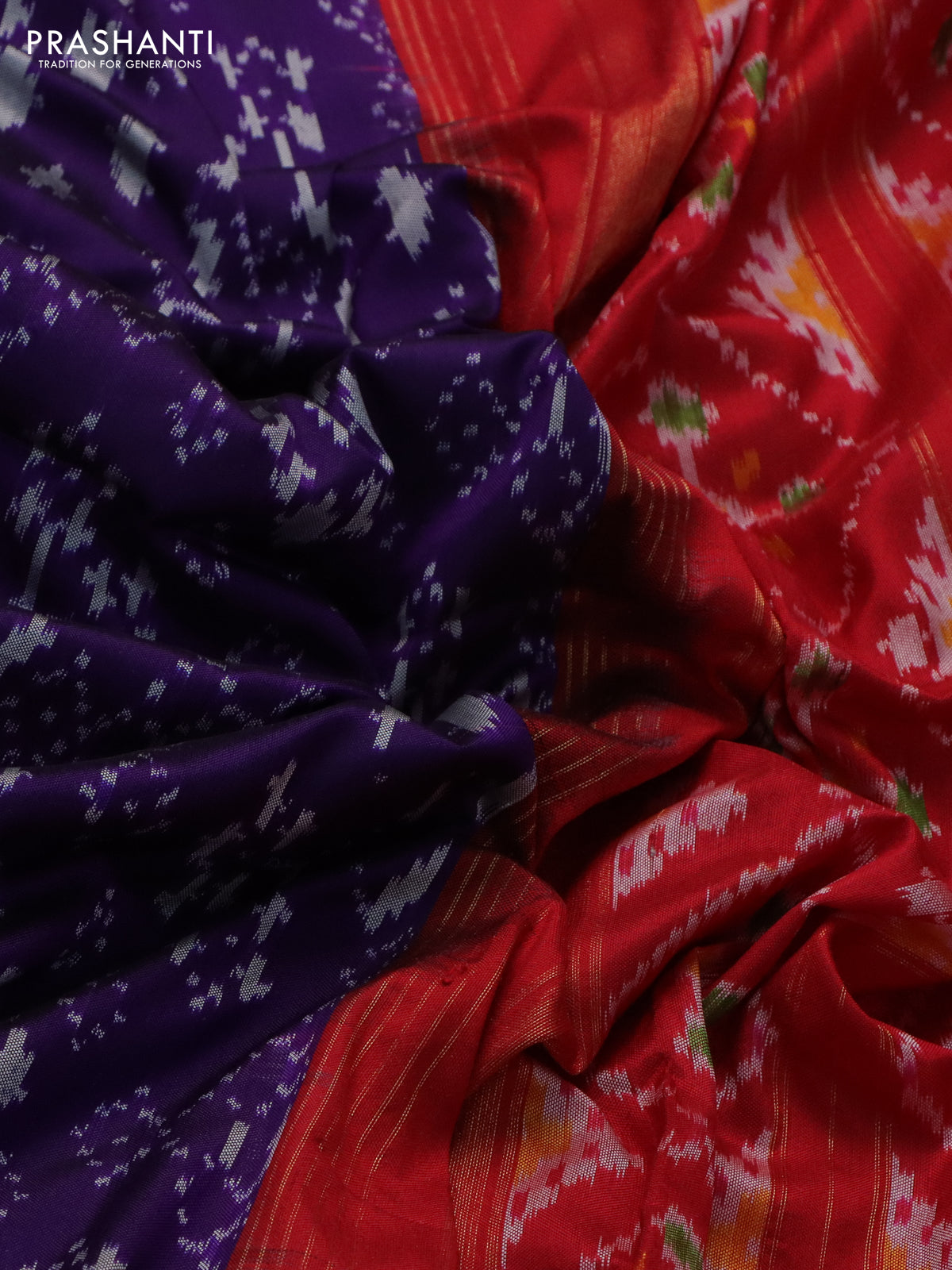 Pochampally silk saree violet and red with allover ikat weaves and zari woven border