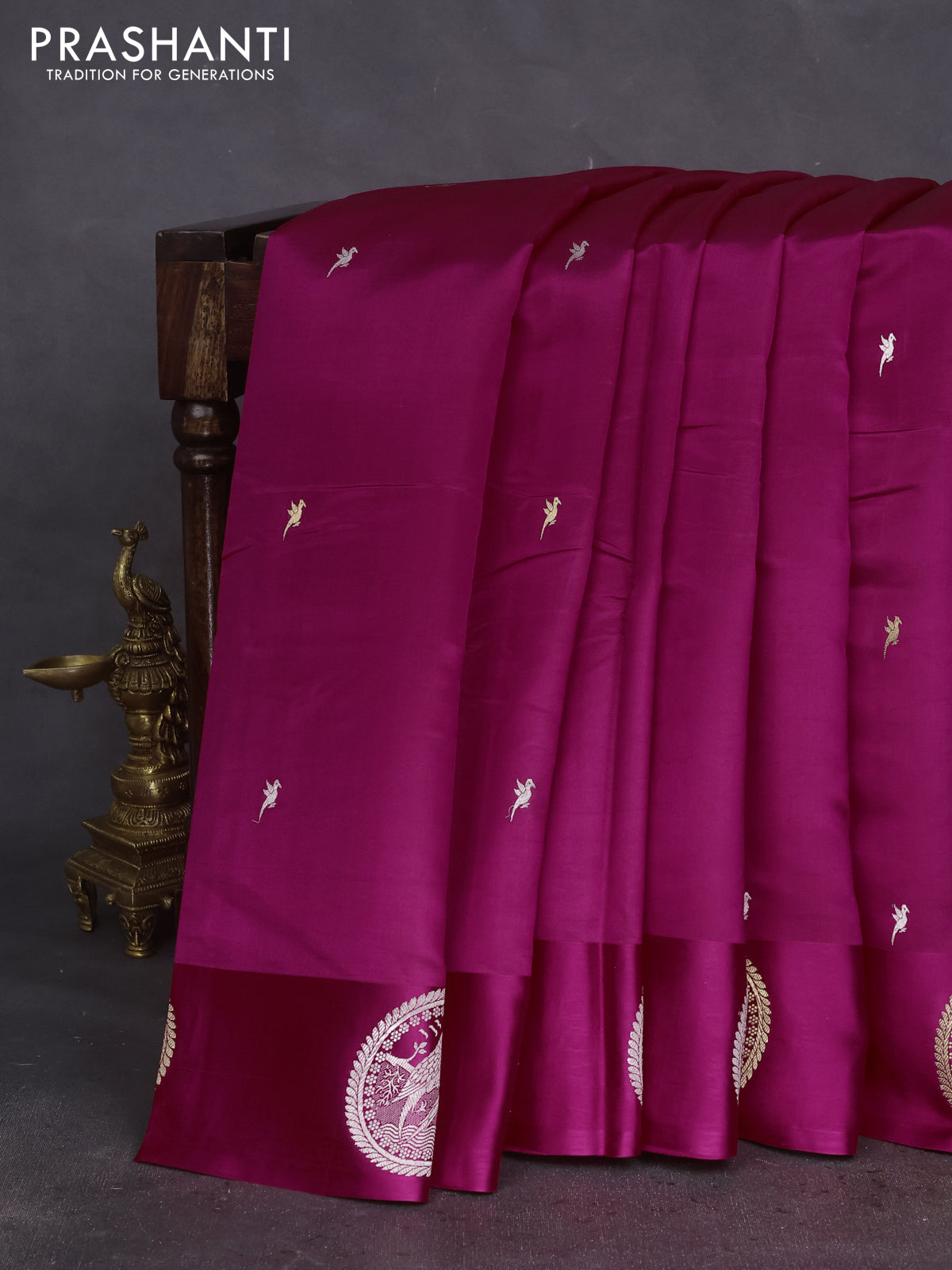 Poona silk saree pink with silver & gold zari buttas and satin border