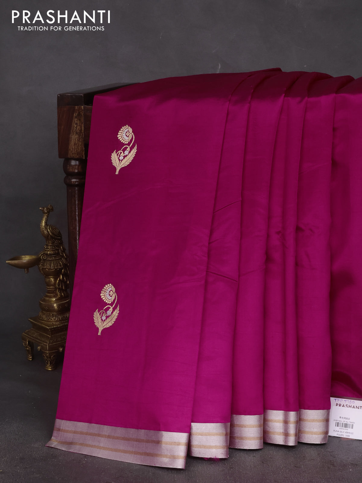 Material :Poona Silk SILK MARK CERTIFIED Blouse : Attached Length of saree : 6.2 mts (5.5 mts saree & 70... Read more
