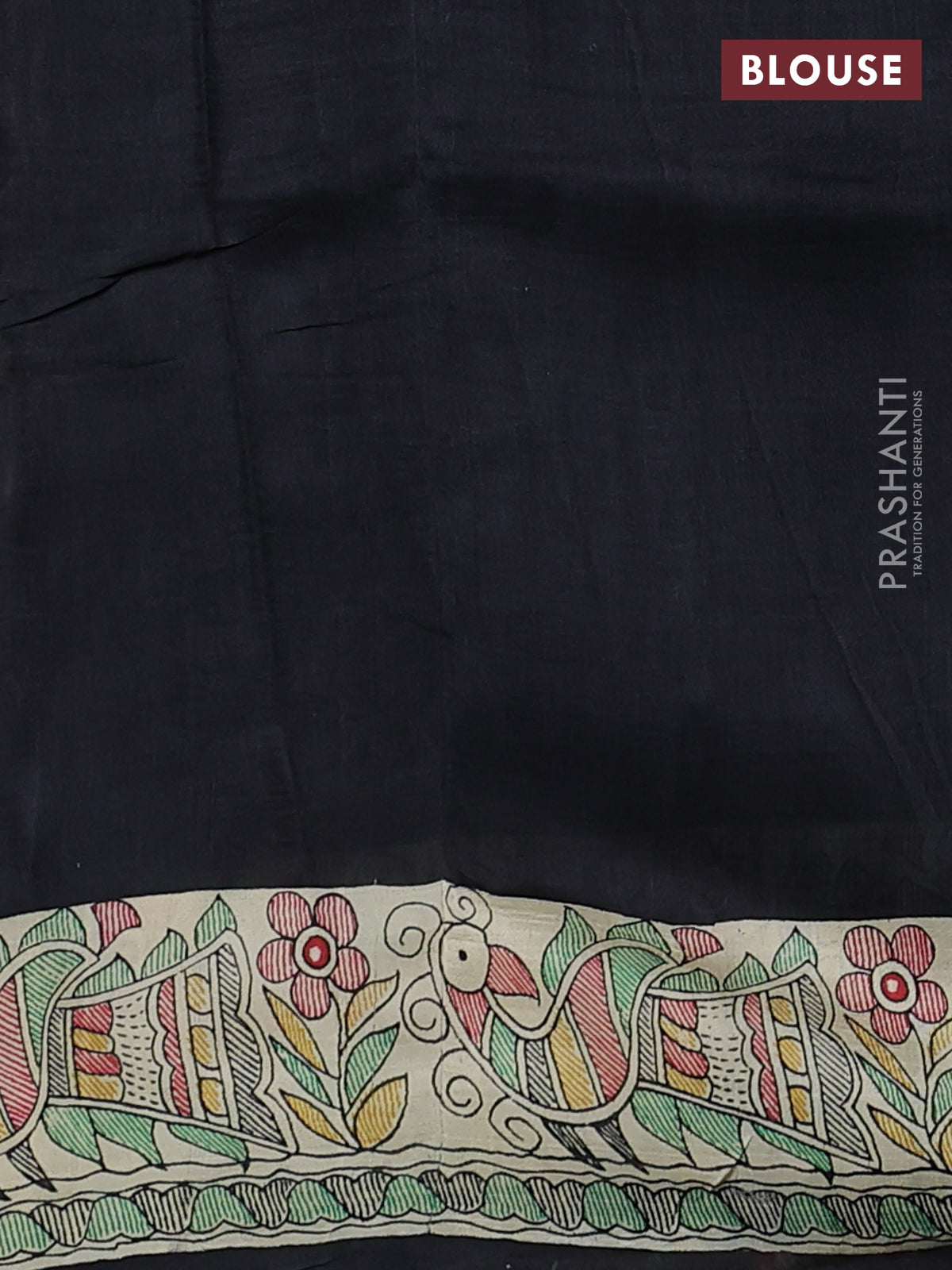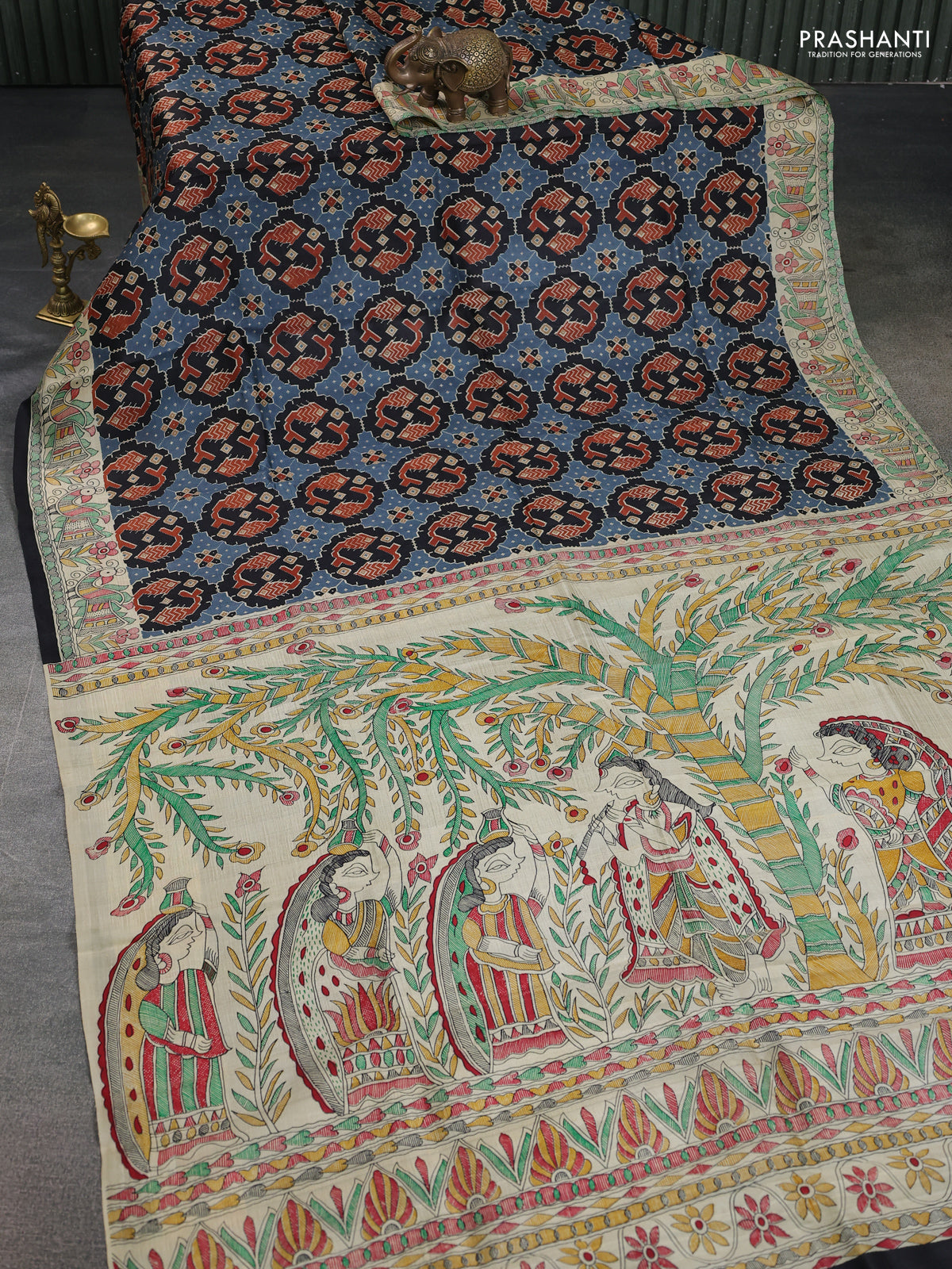 Printed silk saree black and cream with allover patola prints and madhubani printed pallu & border