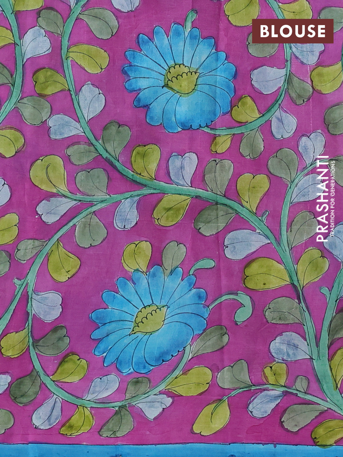 Printed silk saree cs blue and magenta pink with shibori butta prints and kalamkari hand painted pallu & blouse