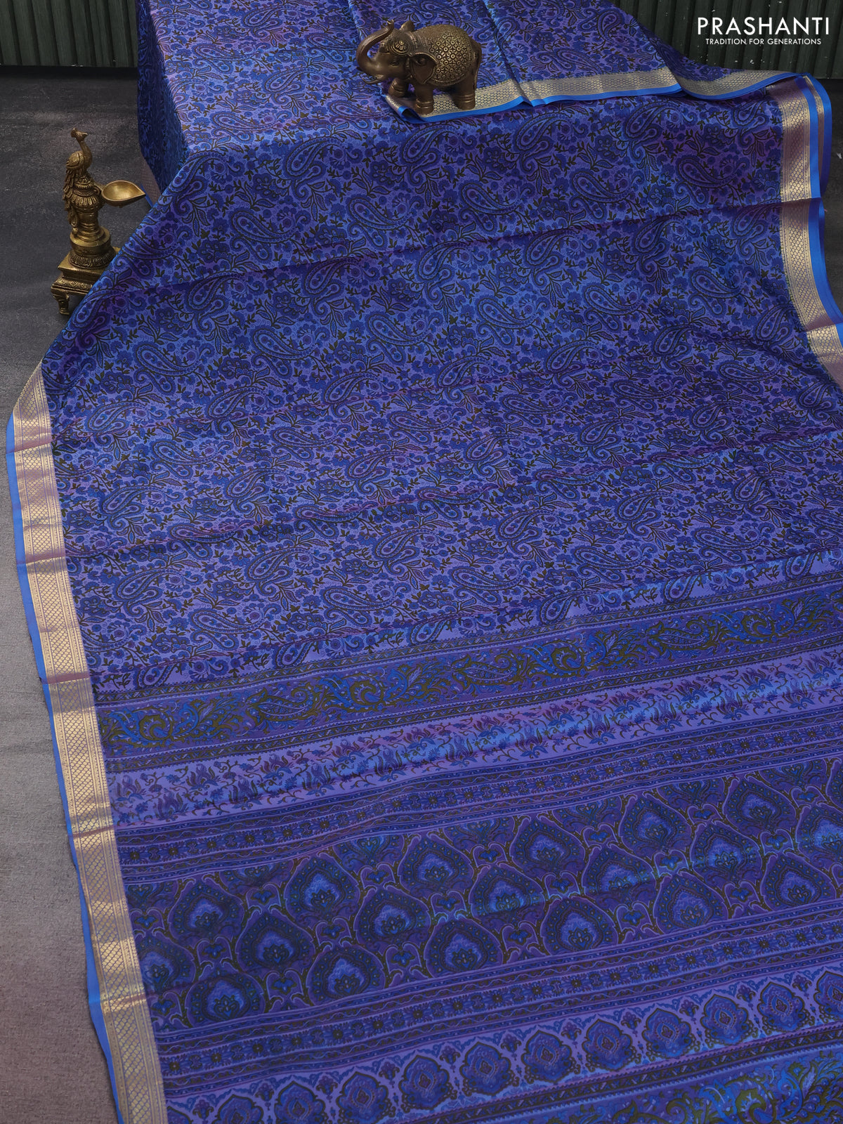 Printed silk saree dual shade of blue with allover prints and zari woven border