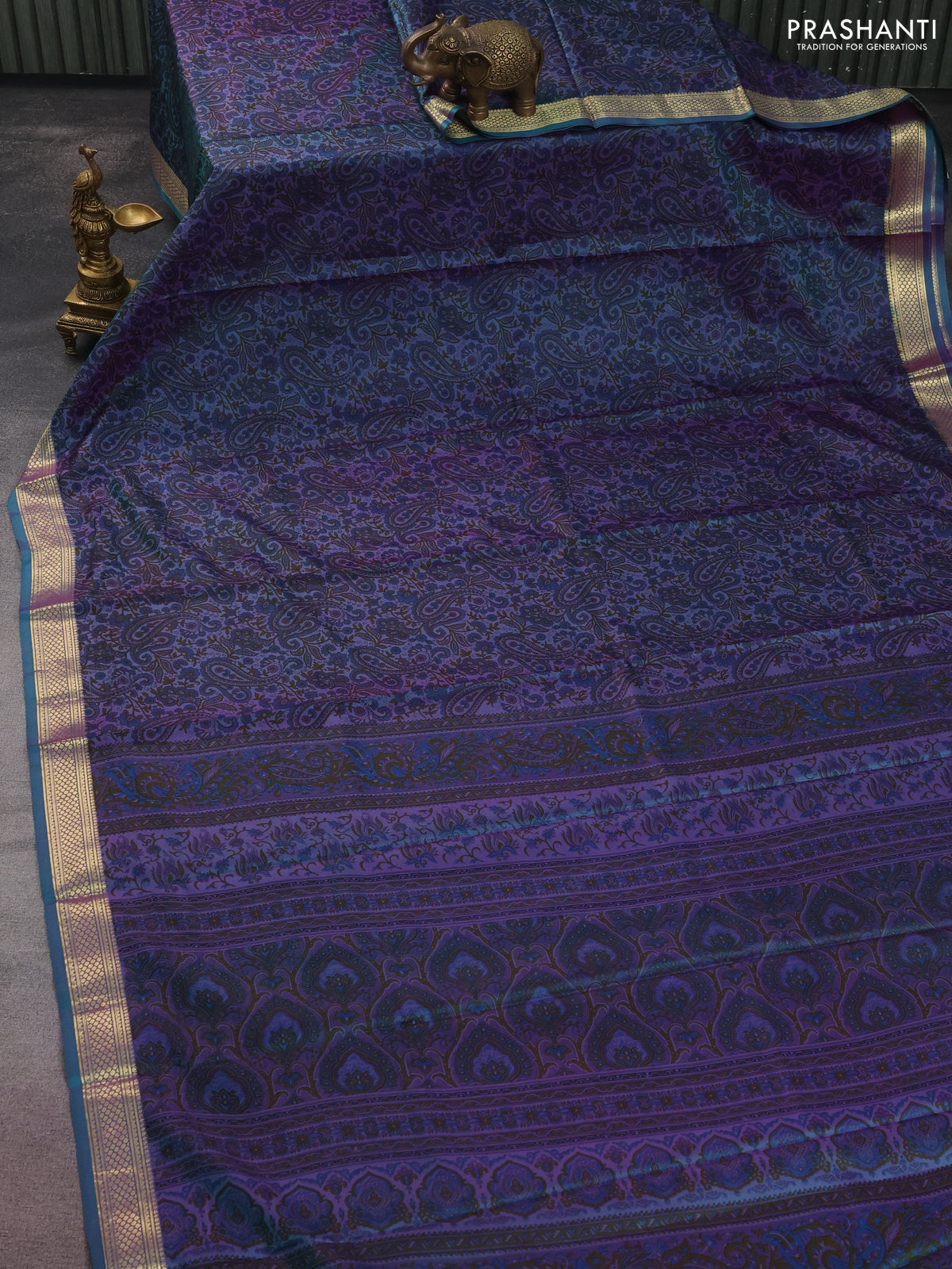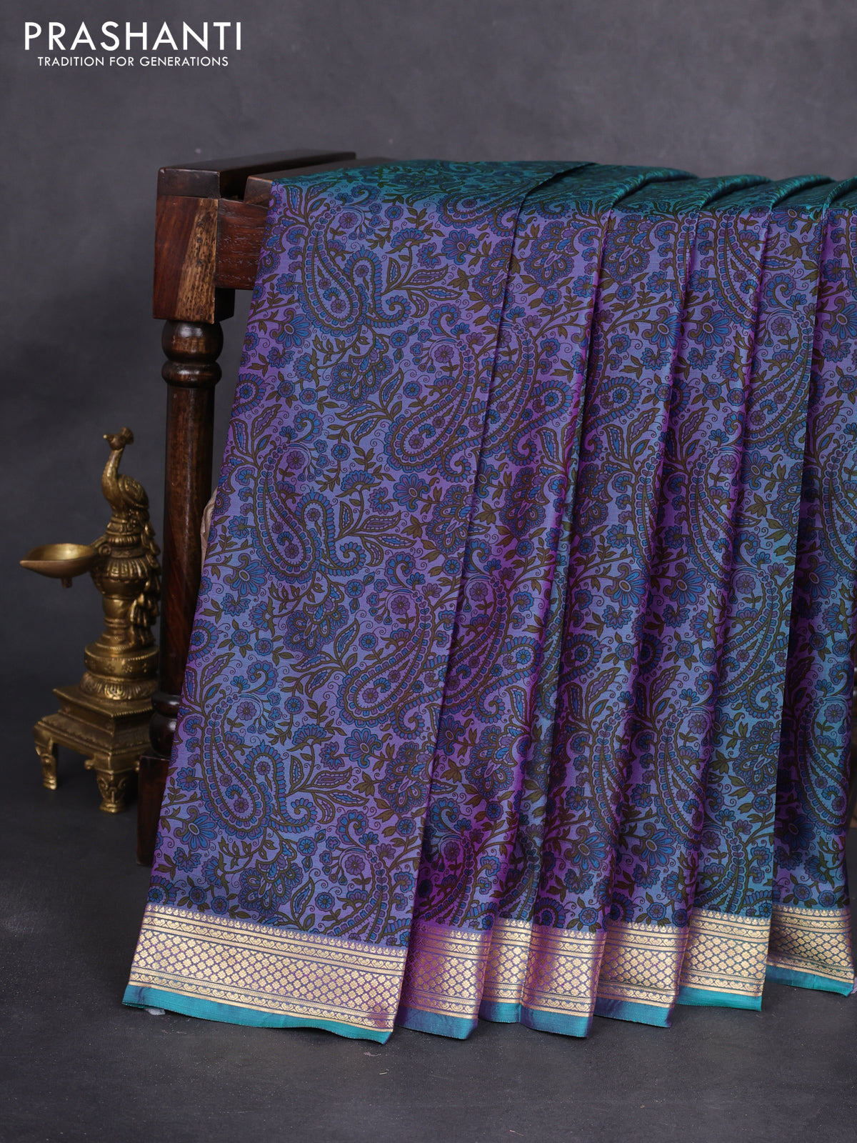 Printed silk saree dual shade of bluish purple with allover prints and zari woven border