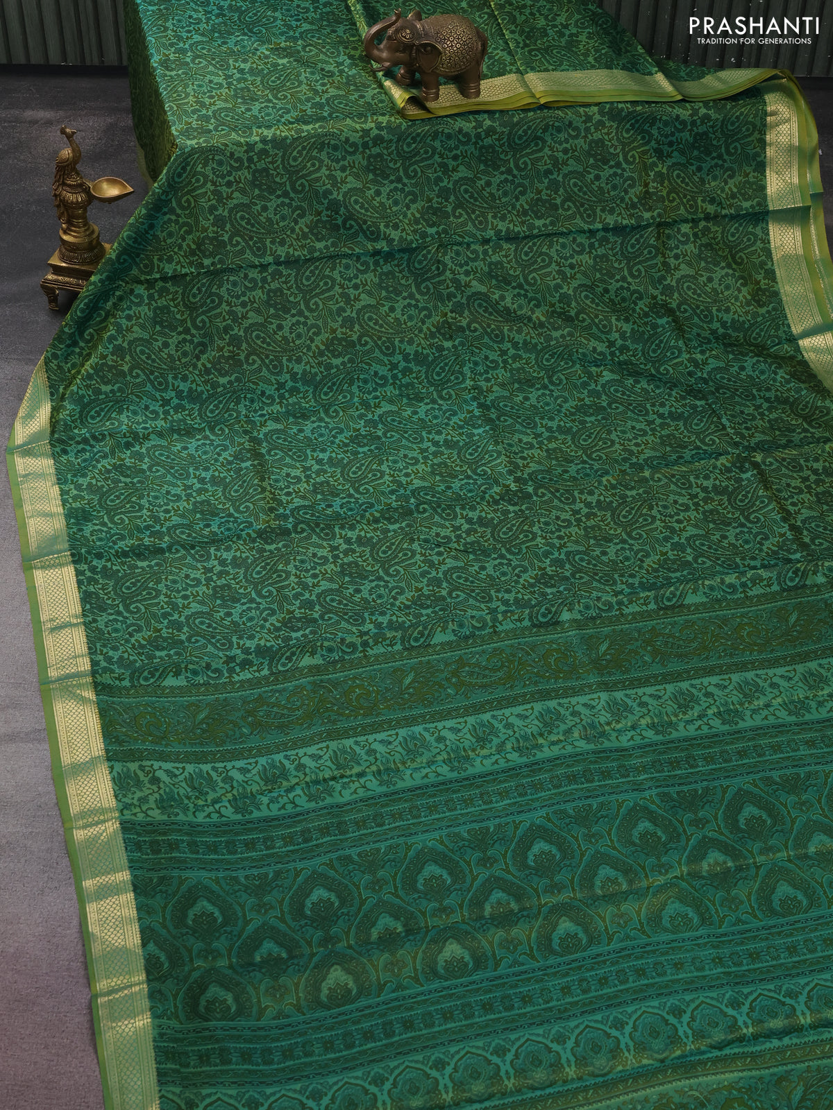 Printed silk saree dual shade of light green with allover prints and zari woven border