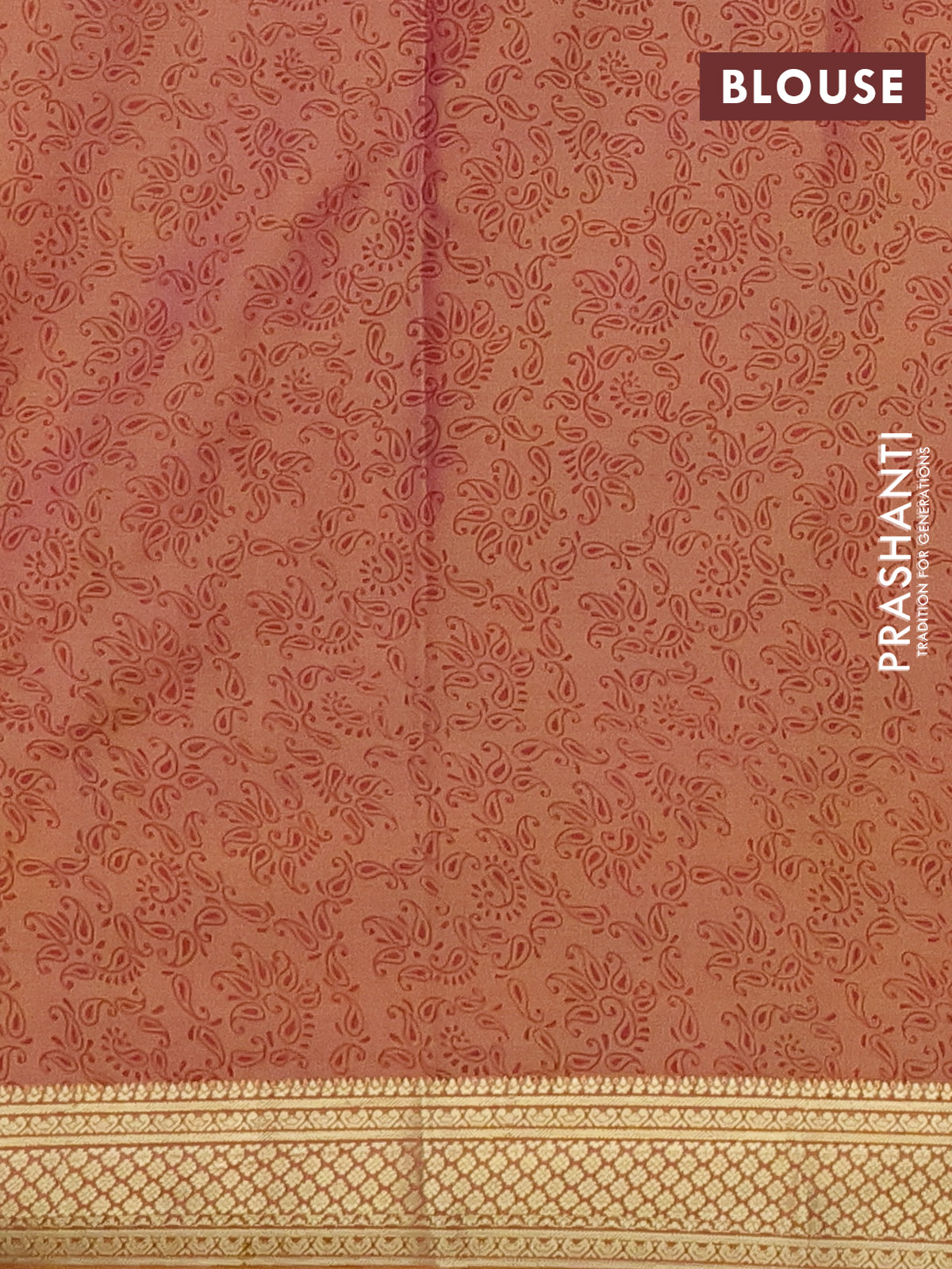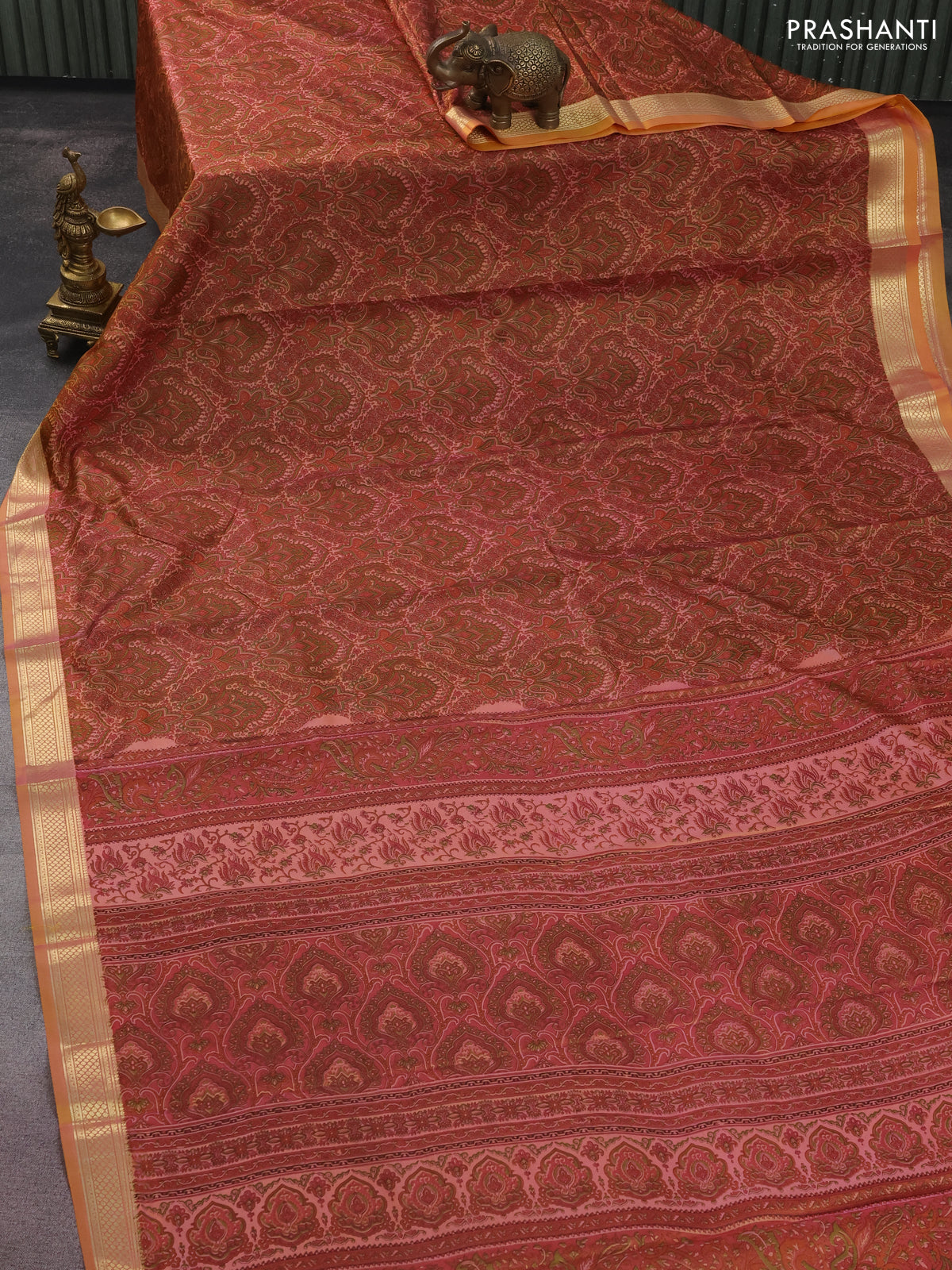Printed silk saree dual shade of peach orange with allover prints and zari woven border