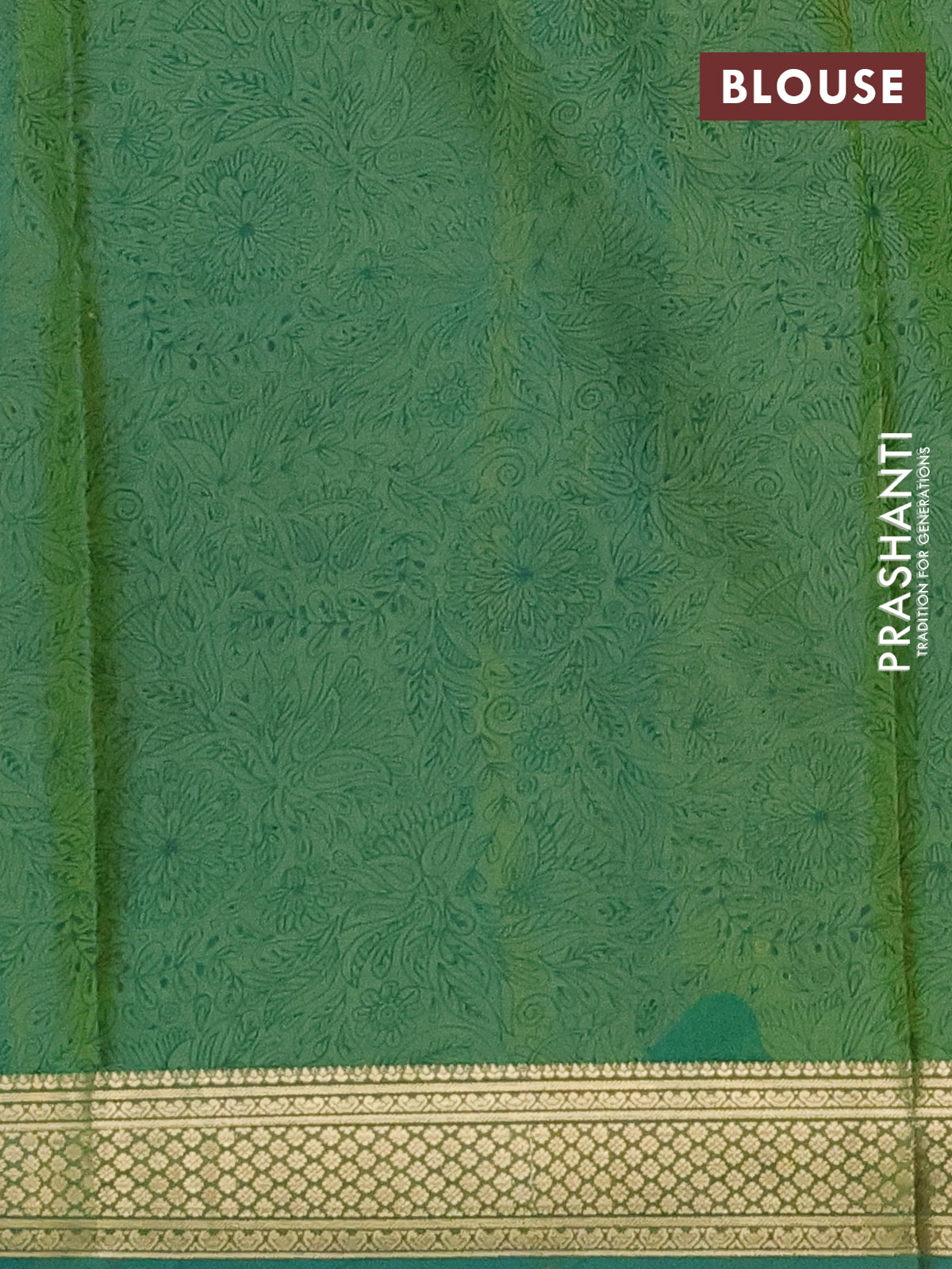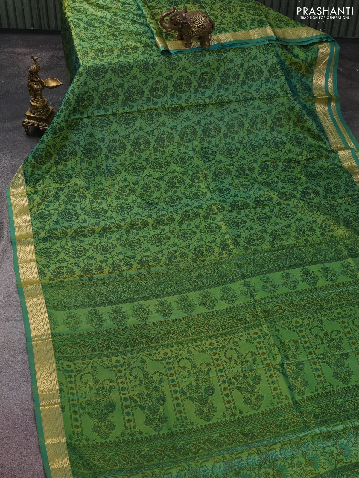 Printed silk saree dual shade of teal green with allover prints and zari woven border
