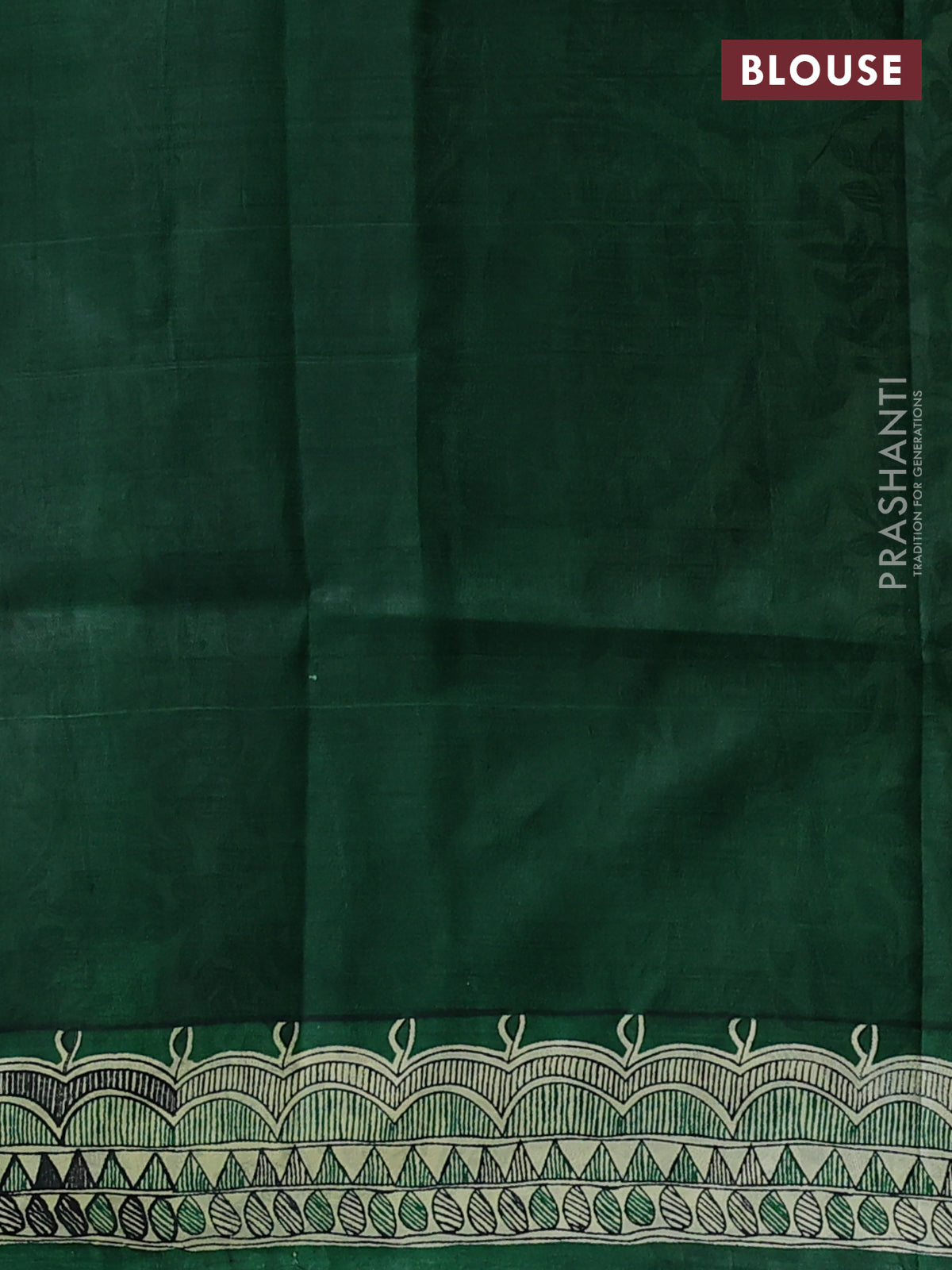 Printed silk saree green and cream with allover shibori prints and madhubani printed pallu & border