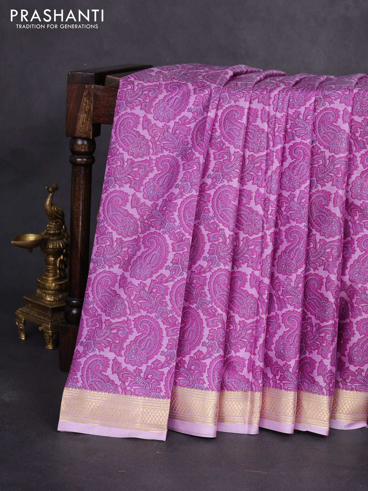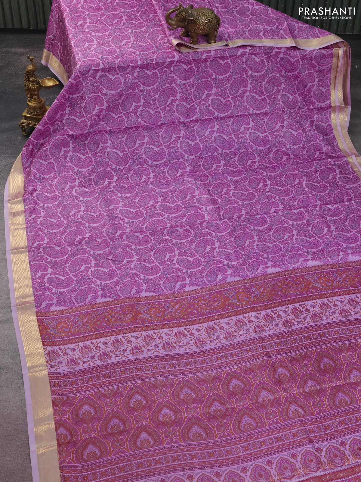Printed silk saree lotus pink and pink with allover paisley prints and zari woven border