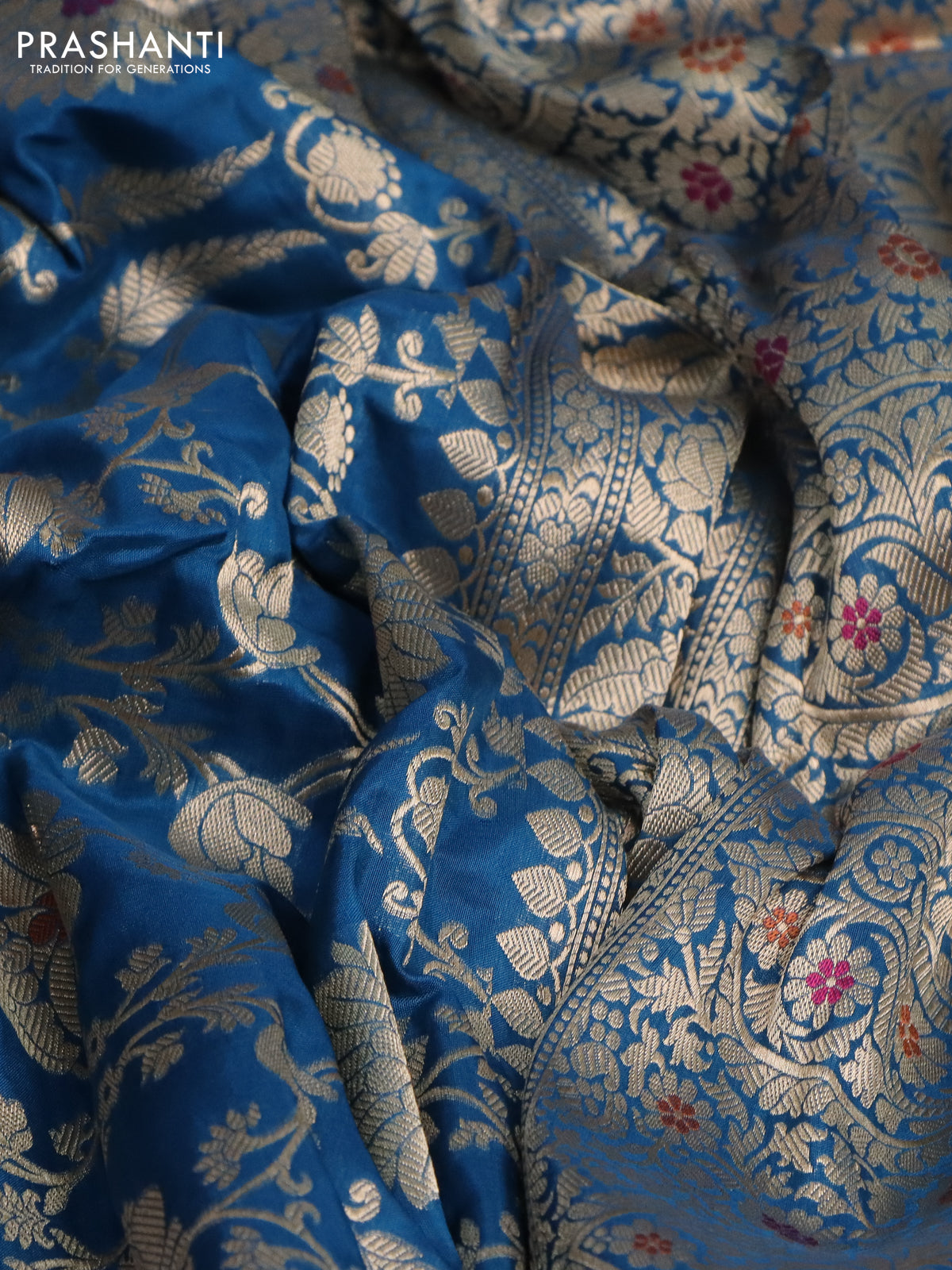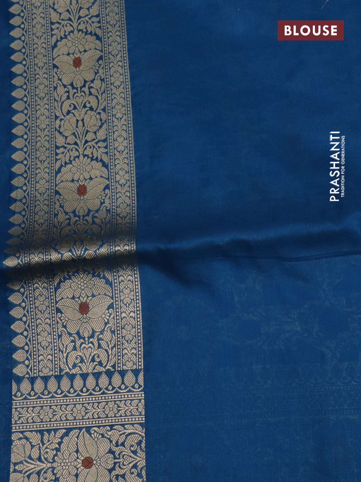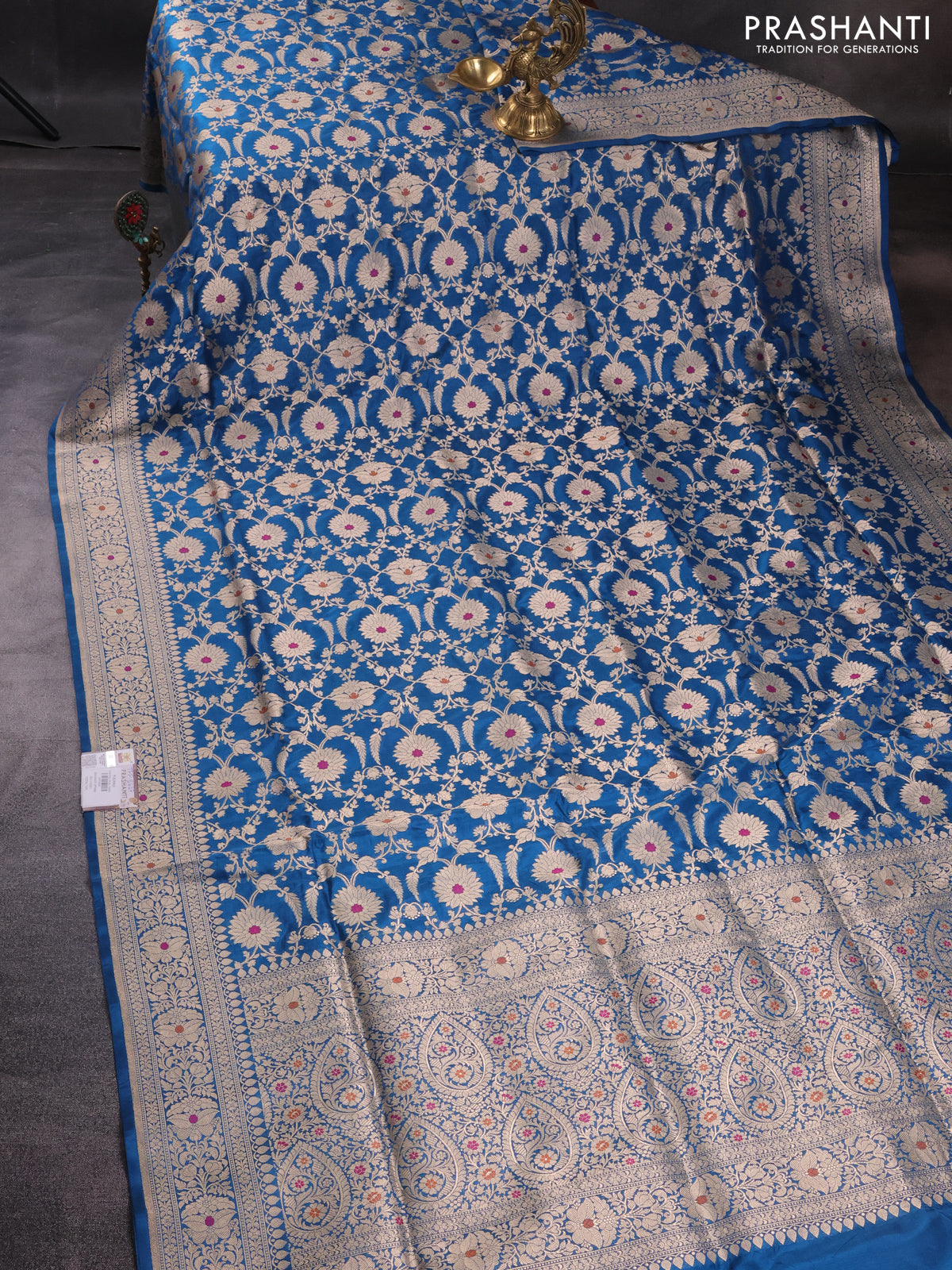 Pure banarasi uppada silk saree cs blue with allover zari woven brocade weaves and zari woven border