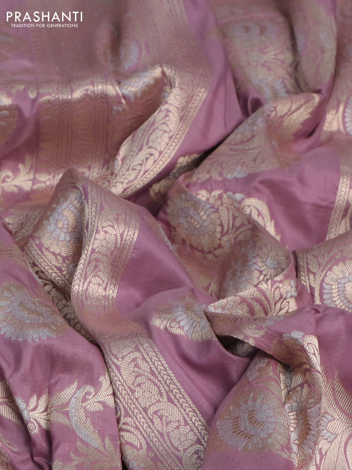 Pure banarasi uppada silk saree mauve pink with allover floral zari weaves and zari woven border