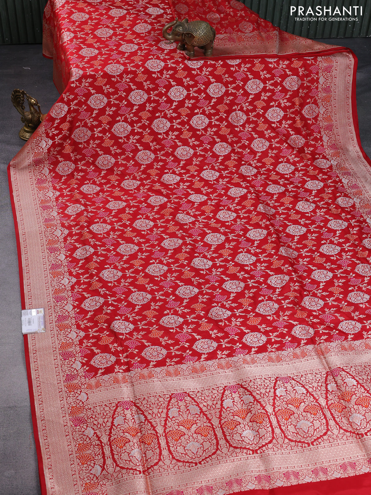 Pure banarasi uppada silk saree red with allover zari woven brocade weaves and zari woven border