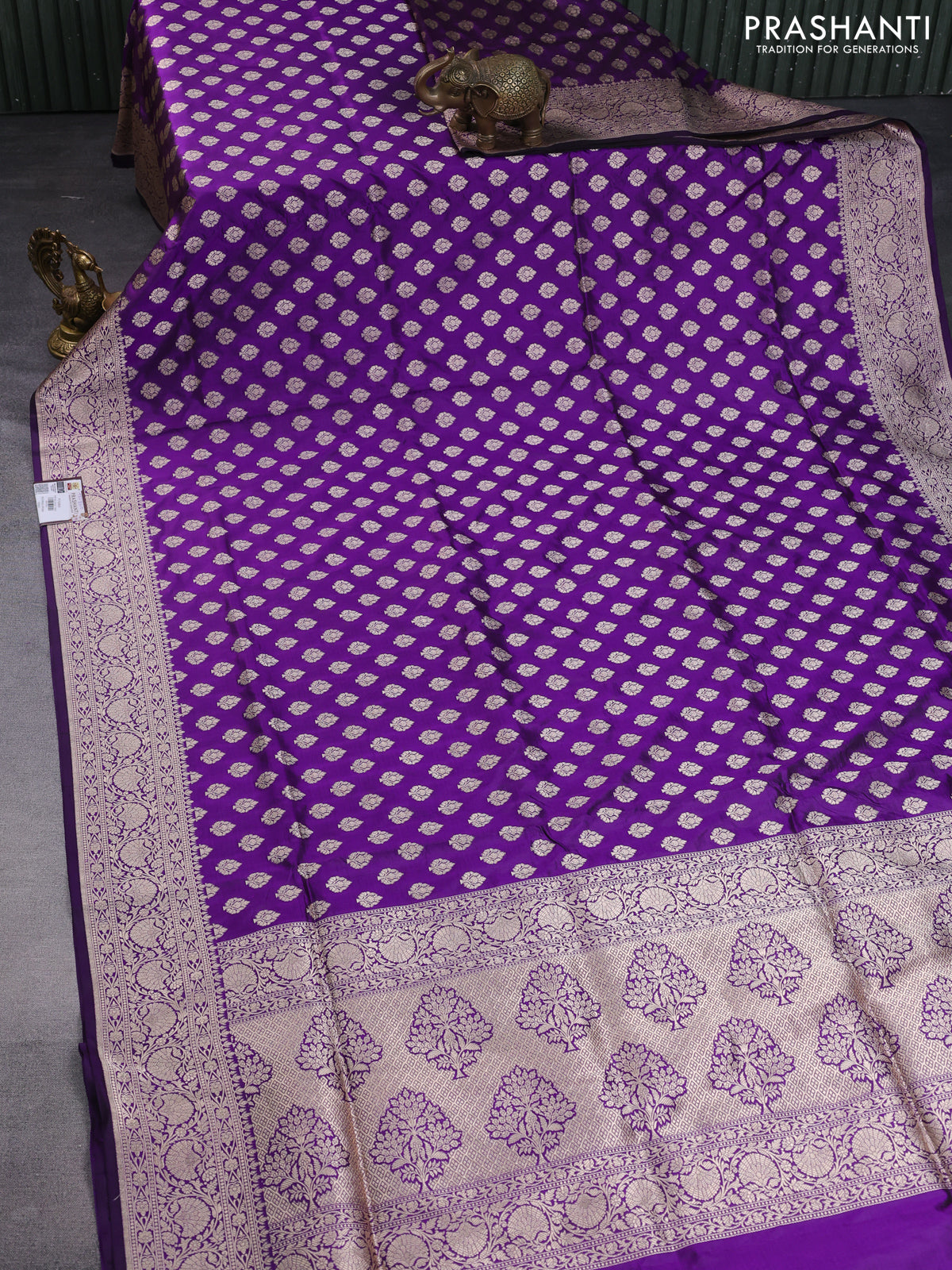 Pure banarasi uppada silk saree violet with allover zari woven butta weaves and zari woven border