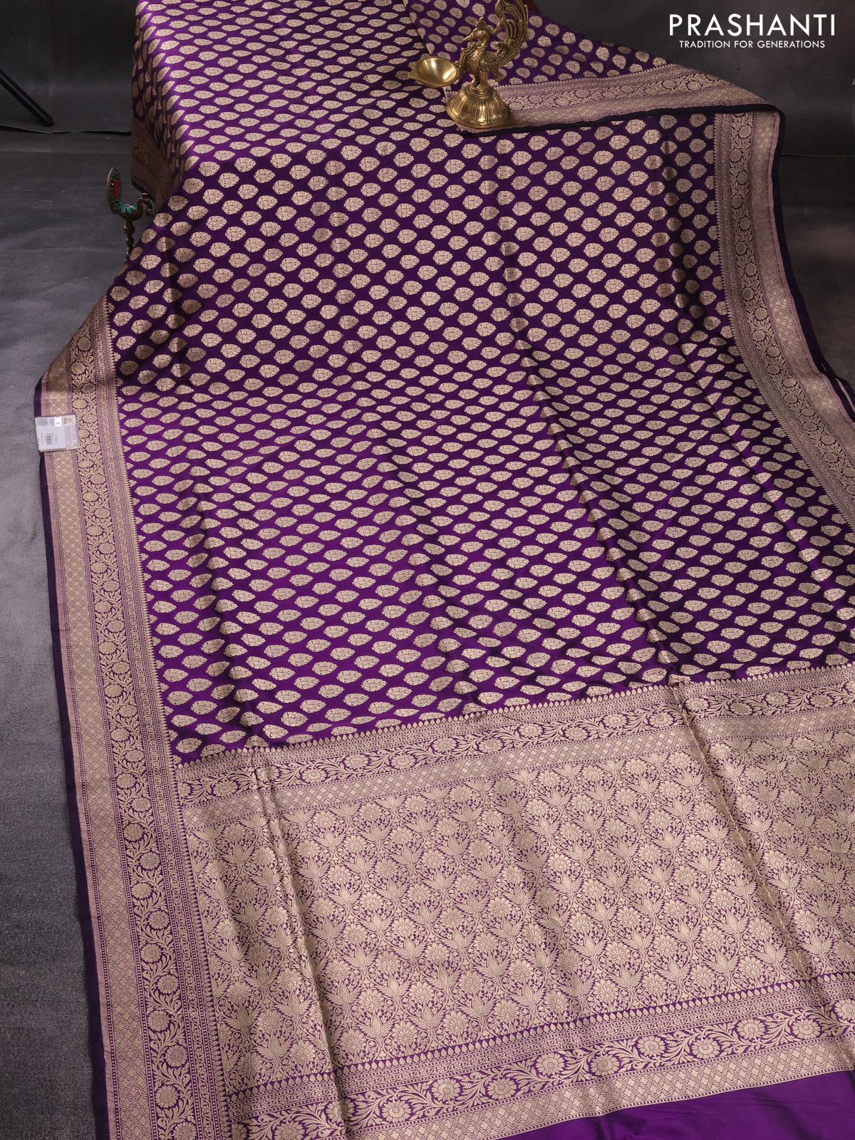 Pure banarasi uppada silk saree violet with allover zari woven butta weaves and zari woven border