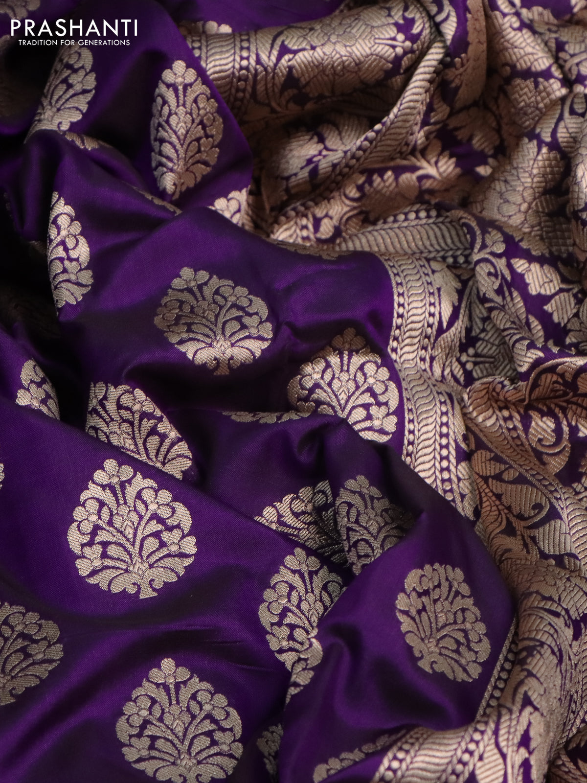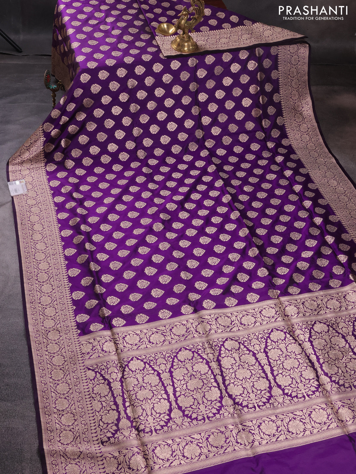 Pure banarasi uppada silk saree violet with allover zari woven butta weaves and zari woven border