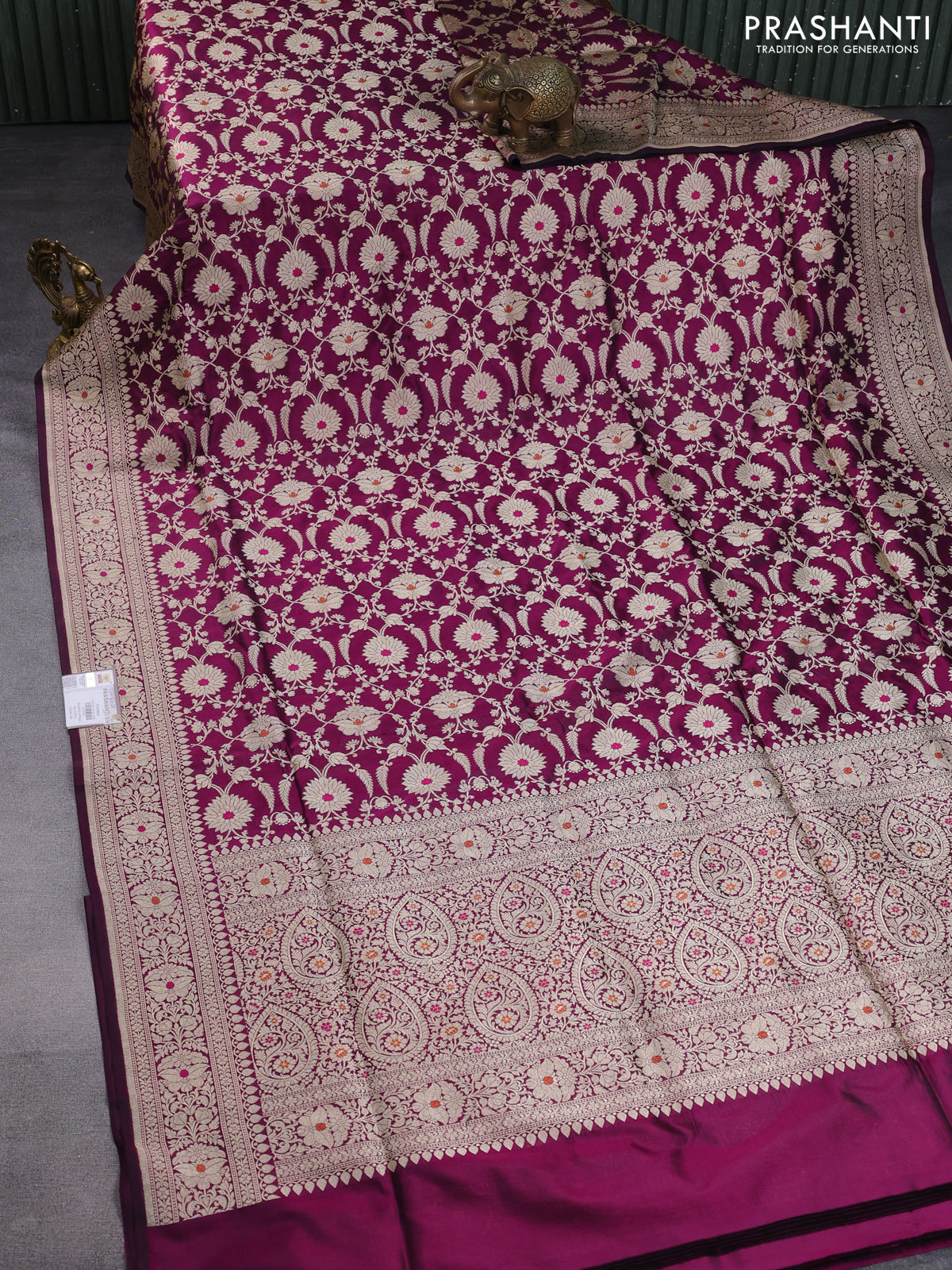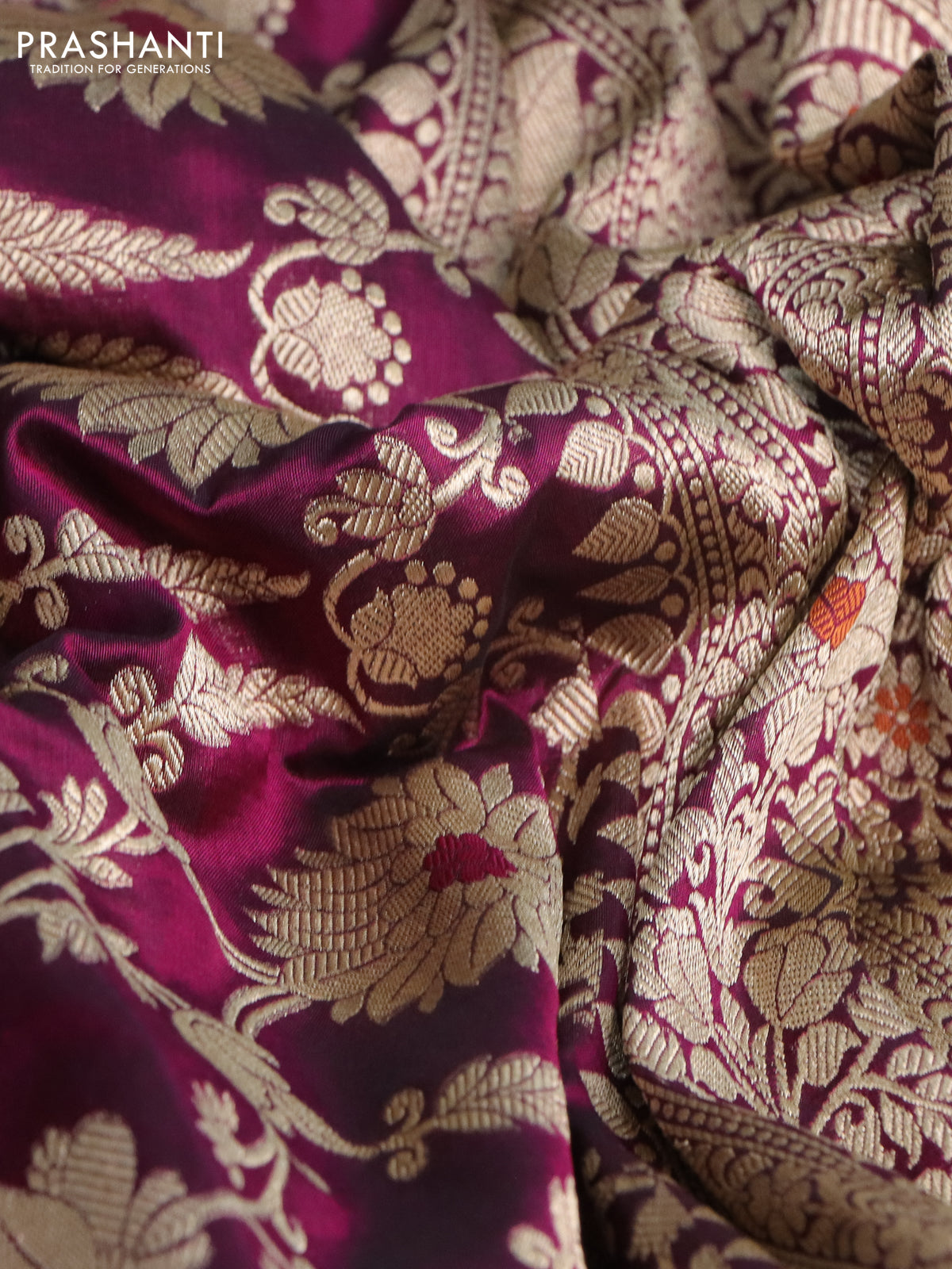 Pure banarasi uppada silk saree wine shade with allover zari woven brocade weaves and zari woven border