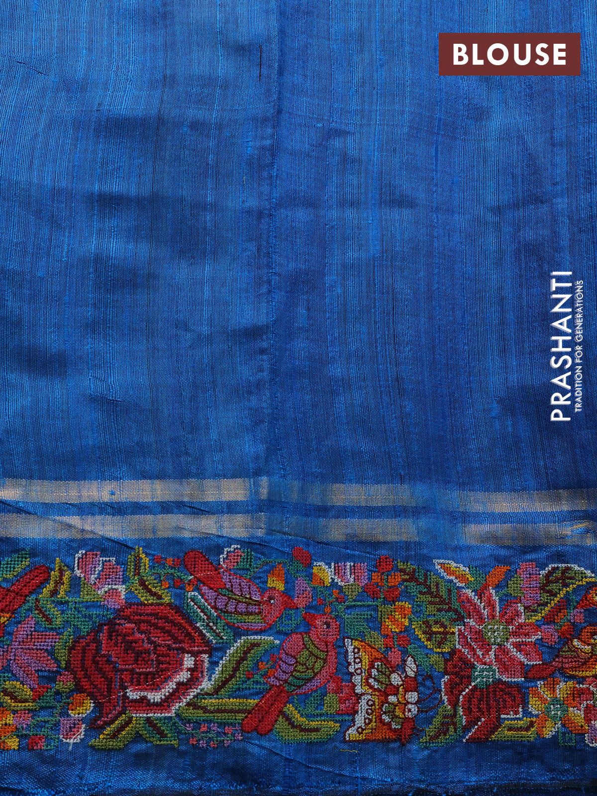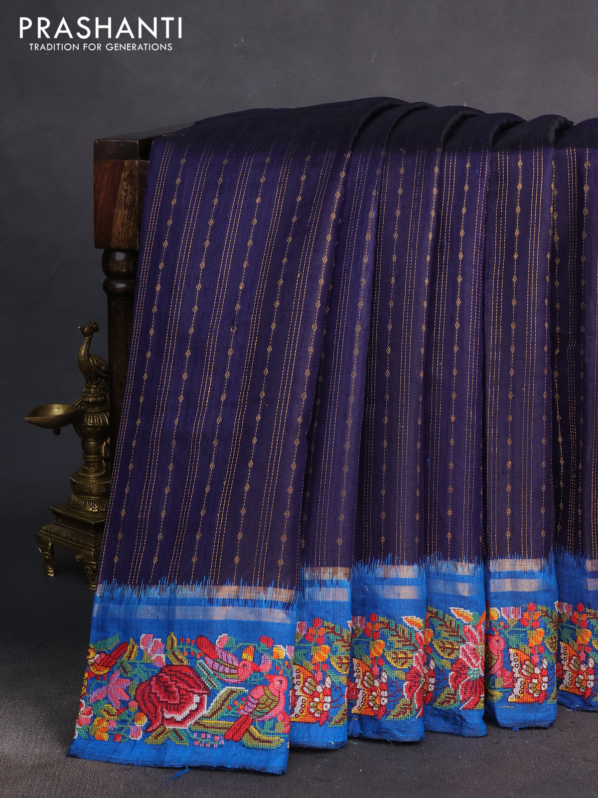 Pure dupion silk saree blue and cs blue with allover zari weaves and parsi work border