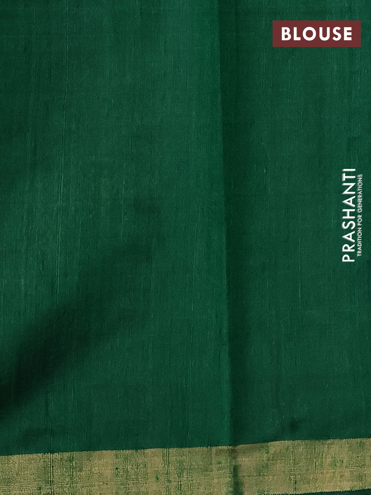 Pure dupion silk saree green with zari woven floral buttas and zari woven border