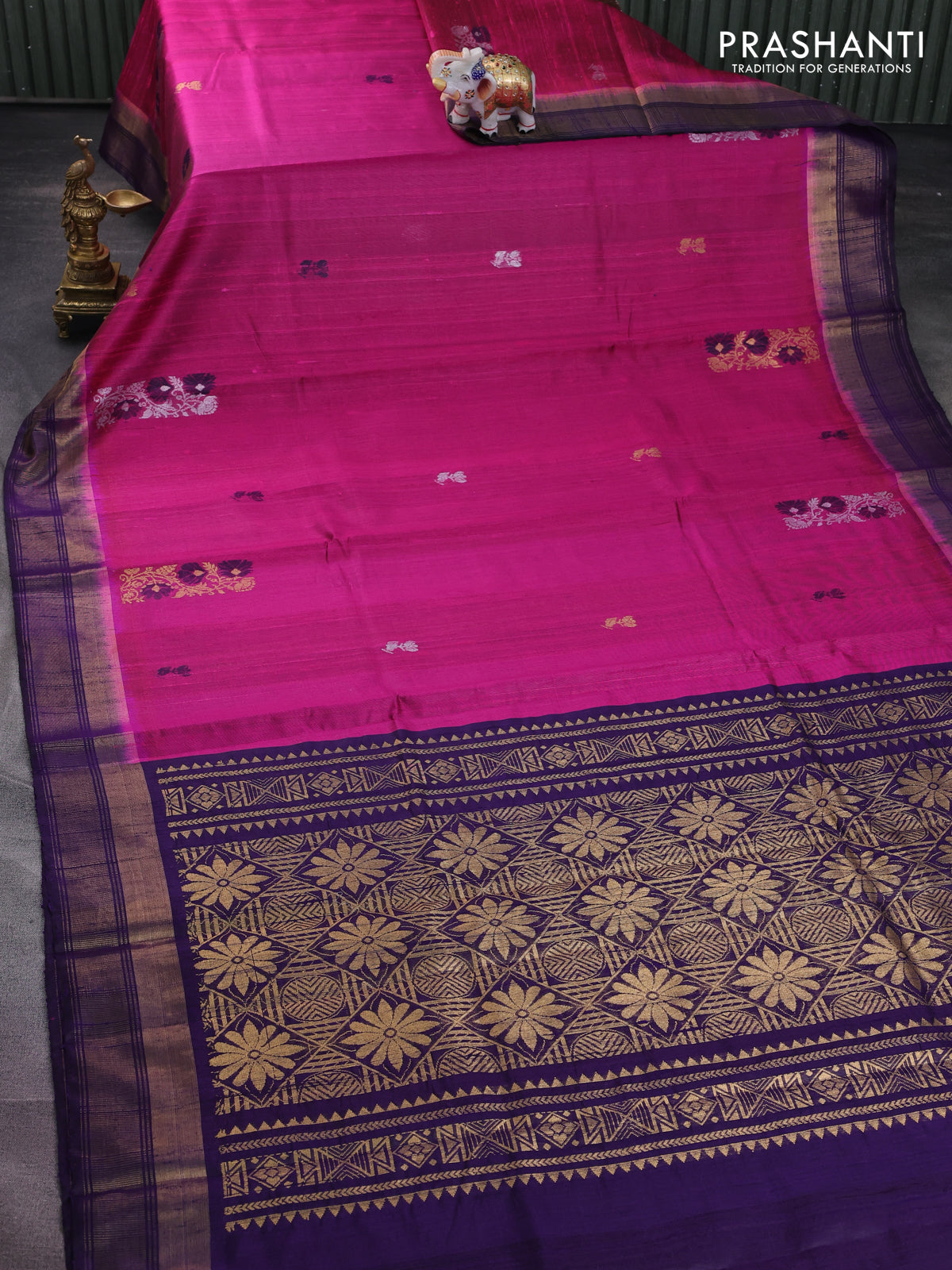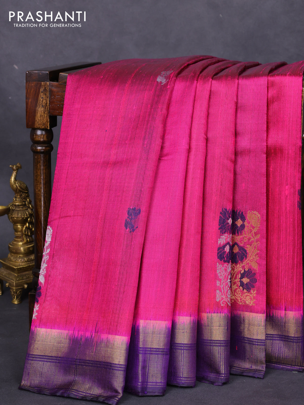 Pure dupion silk saree pink and violet with thread & silver zari woven buttas and zari woven border
