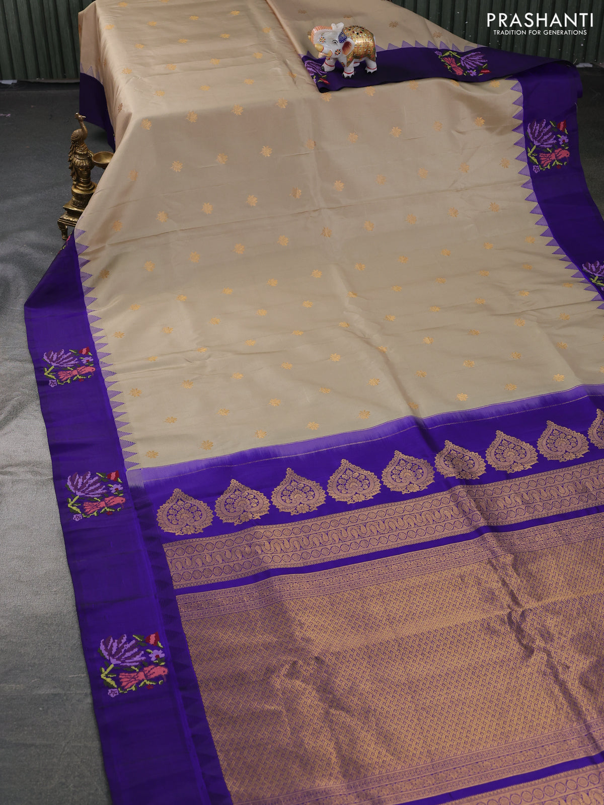 Pure gadwal silk saree beige and blue with zari woven buttas and embroided butta border