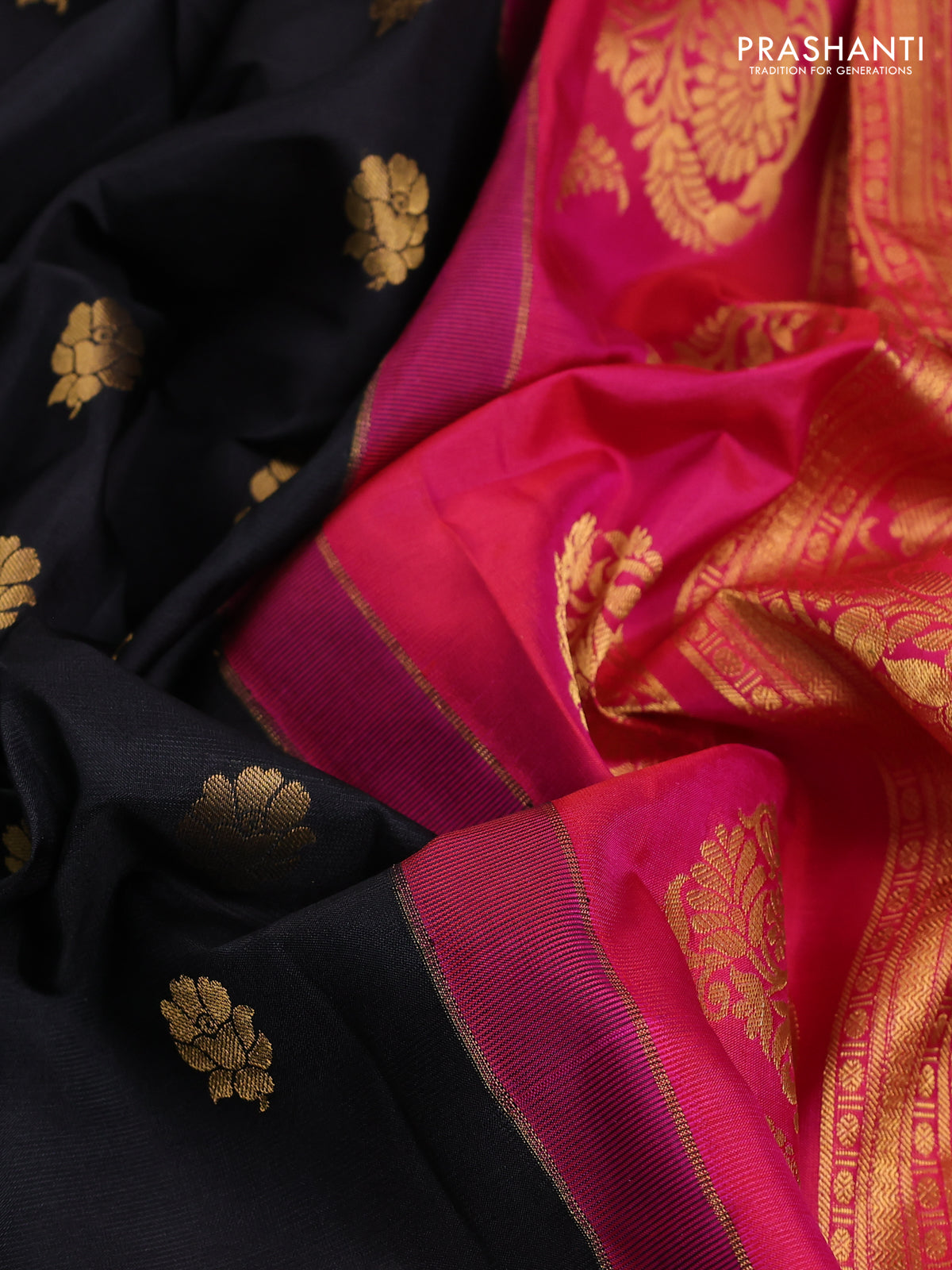 Pure gadwal silk saree black and pink with floral zari woven buttas and zari woven korvai border