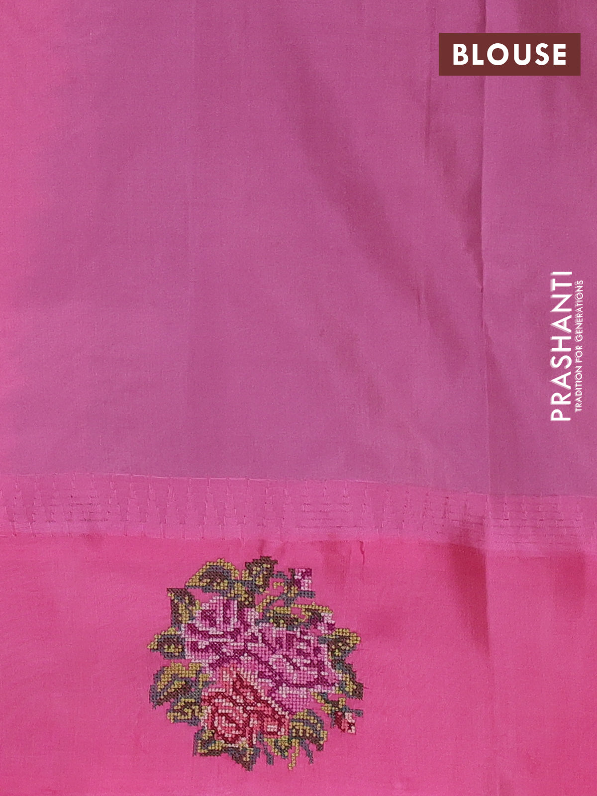 Pure gadwal silk saree blue and pink with zari woven buttas and embroided butta border