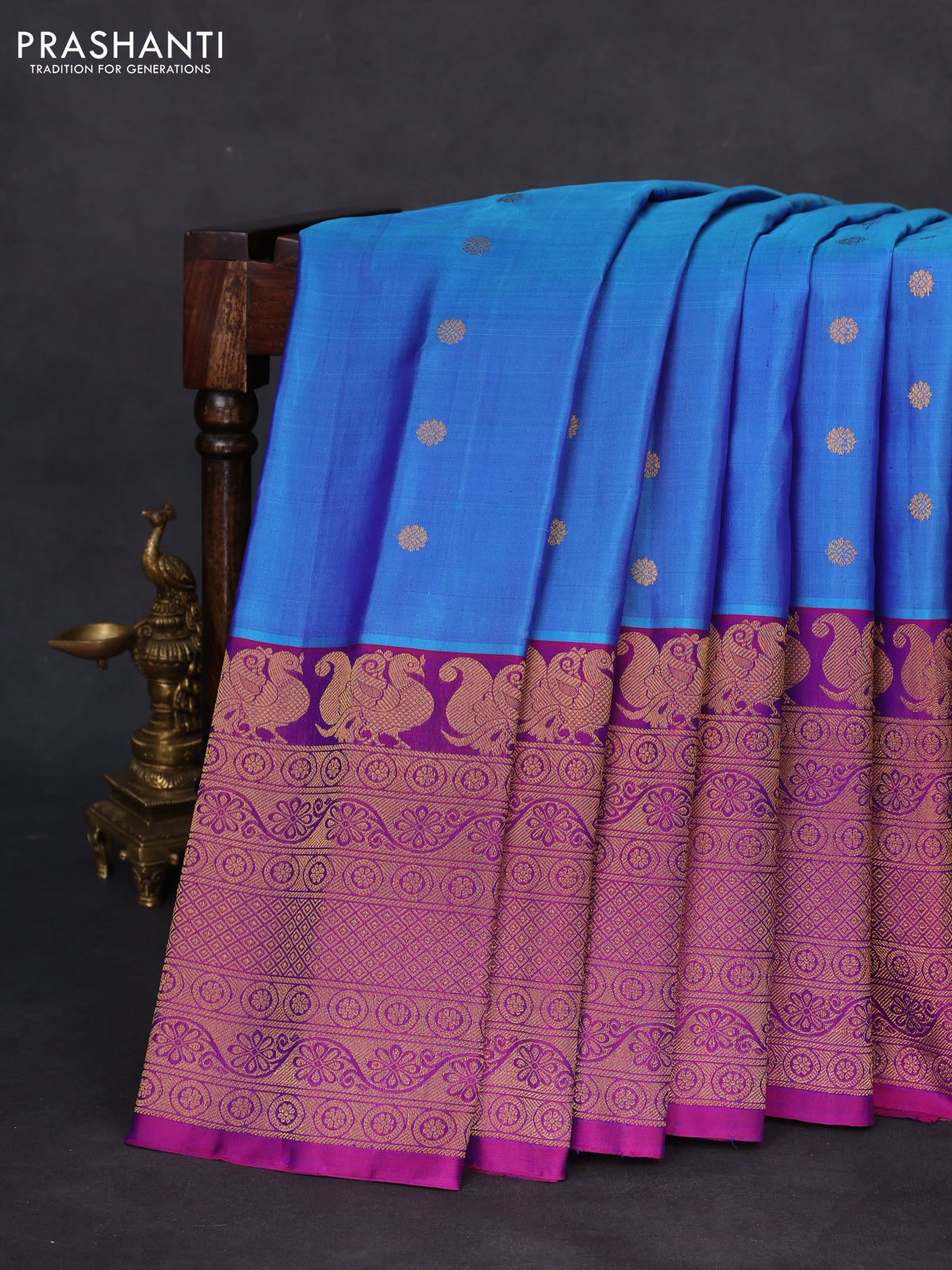 Pure gadwal silk saree blue and purple with zari woven buttas and long rich zari woven border