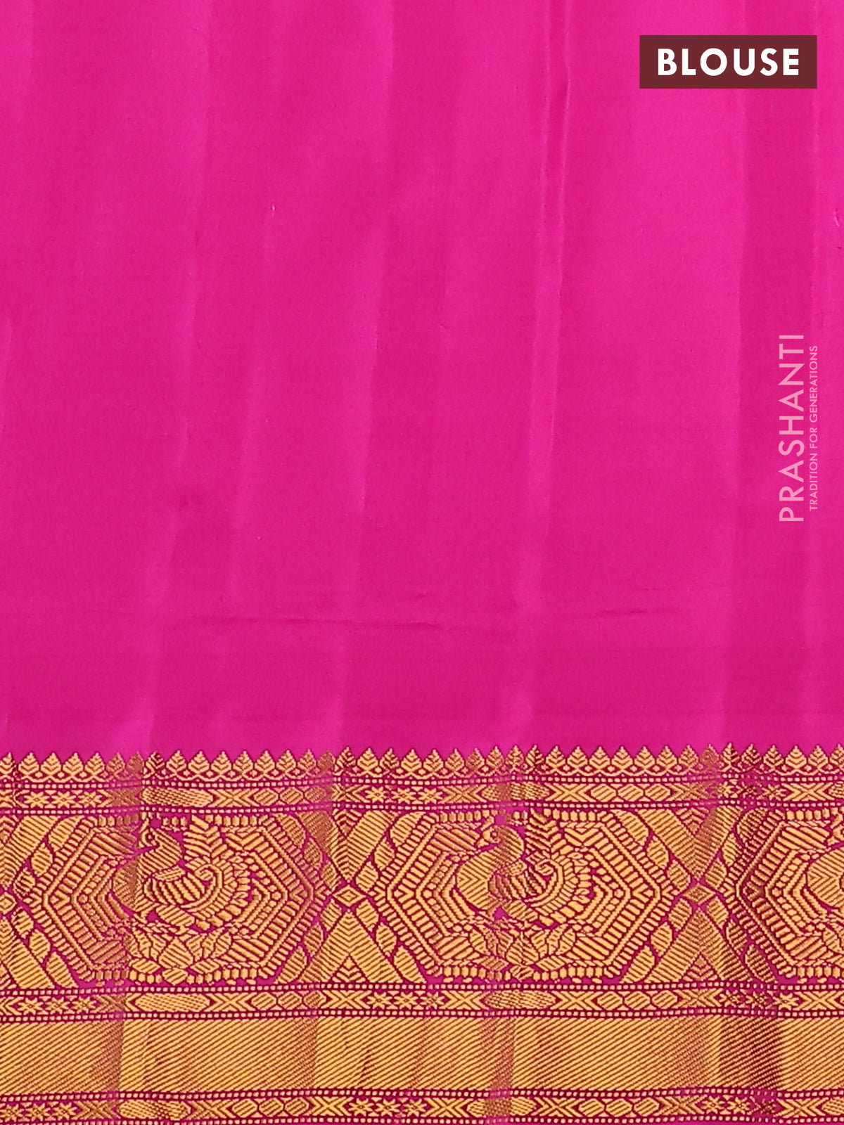 Pure gadwal silk saree green and pink with zari woven buttas and temple design zari woven border