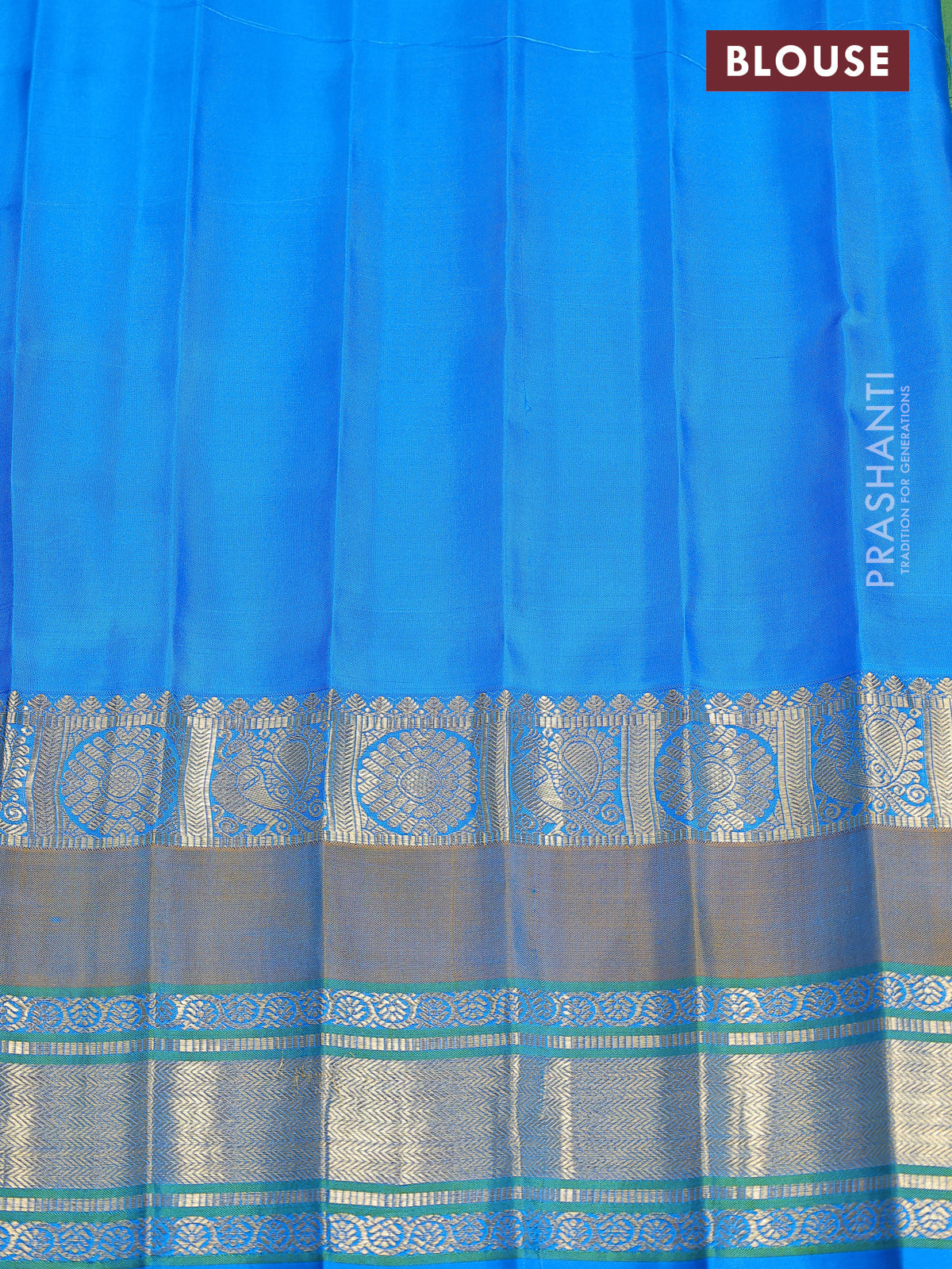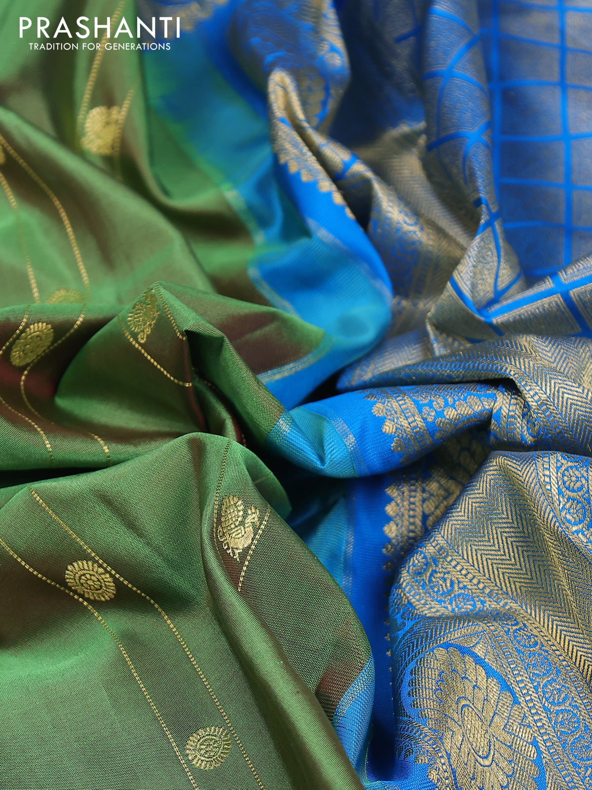 Pure gadwal silk saree green shade and cs blue with zari woven buttas and rettapet annam zari woven border